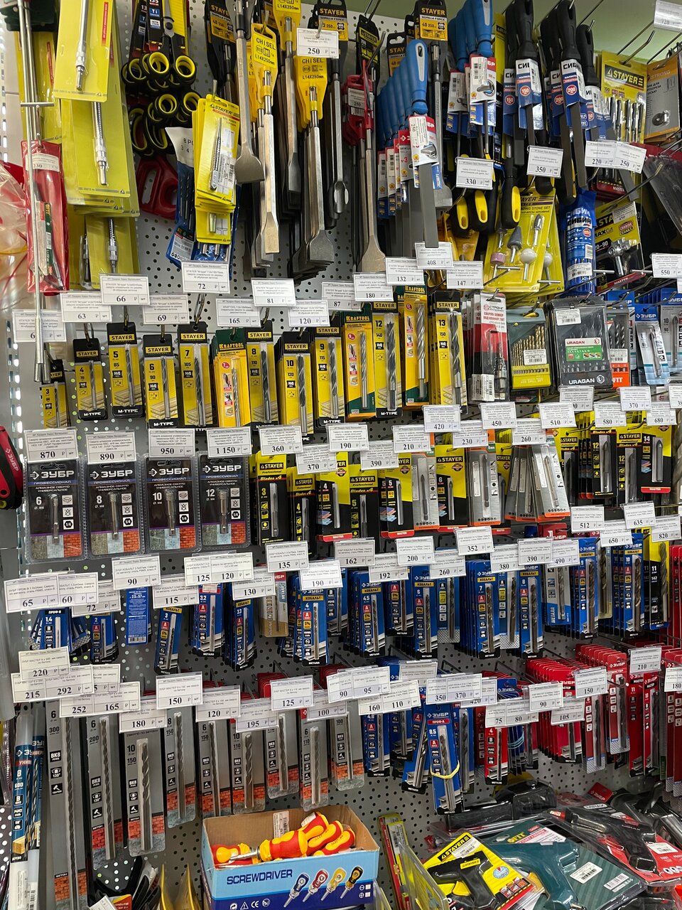 Очень большое разнообразие товаров для ремонта, инструментов, как ручных так и электрических. Гвозди, шурупы и многое другое на любой вкус!