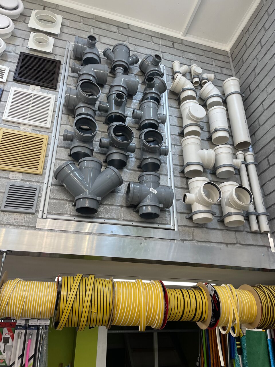 Вентиляционные фитинги, трубы, короба, решетки, вентиляторы.