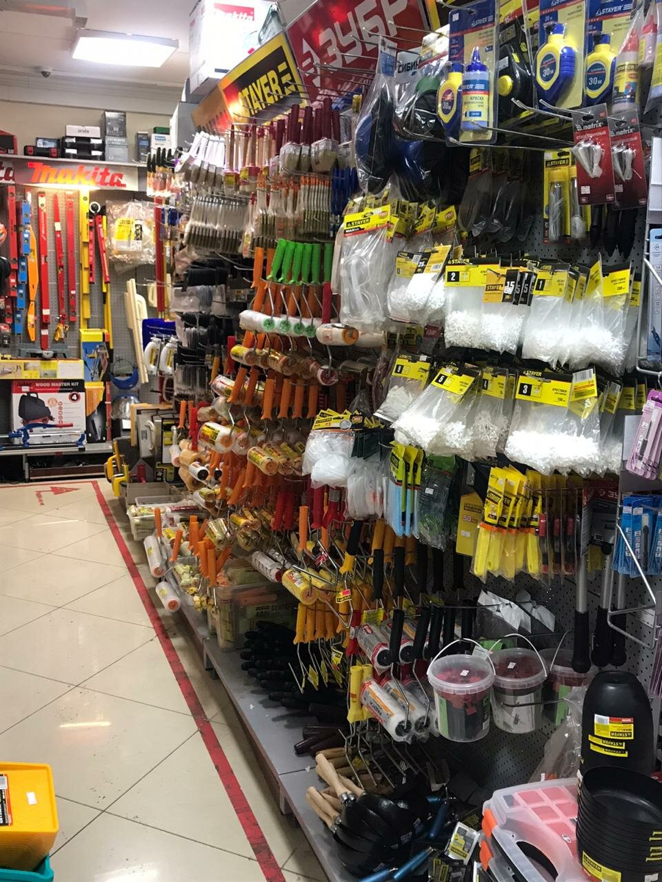 Выбор достаточно большой для бытовых нужд. Брал в разное время: ручной инструмент, шаровые краны, шланги, электрику. Нареканий к качеству нет. Цены не сравнивал, но за шлангом или саморезами проще сходить в этот магазин рядом с домом, чем куда-то ехать.
