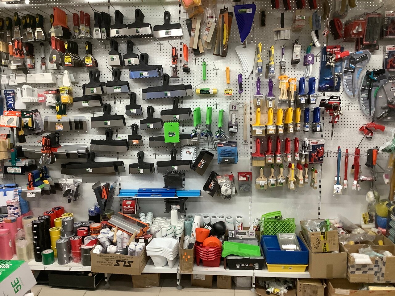 Есть все. От патрона шуруверта, до баллона… (для остальных нужд). Если серьезно? То магазин насыщщен инструментом и оснасткой, крепежом и прочьим расходником. Болтику негде упасть. Продавцы ассортимент знают, цены — как везде. А как везде? Не знаю! Как везде. Наш ответ гирппермаркетам
