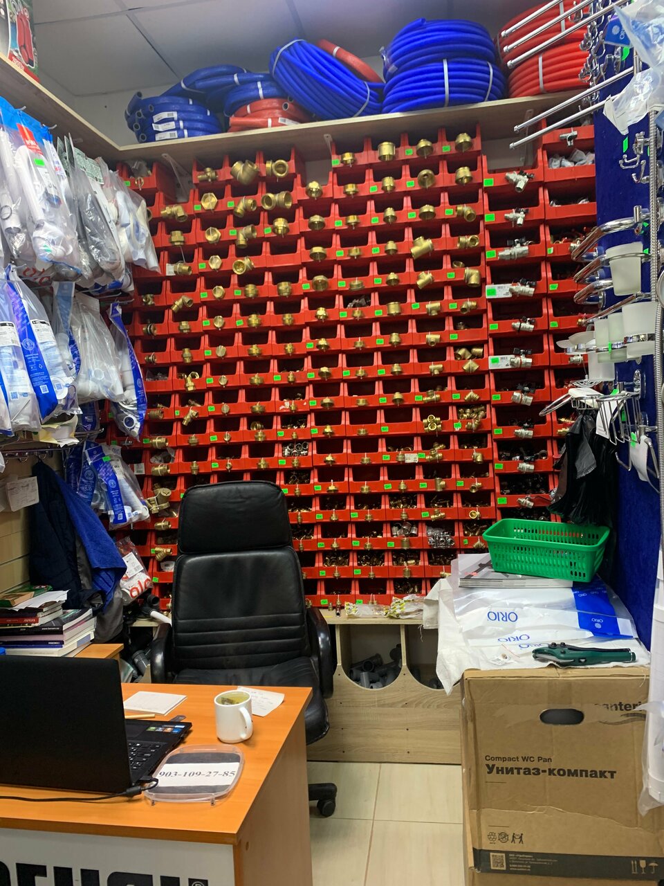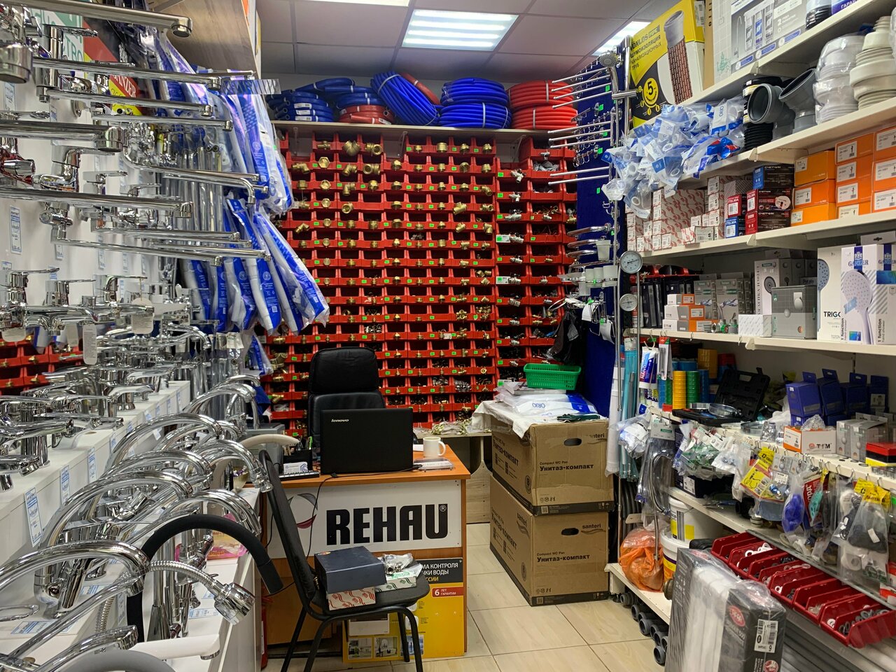 Рабочее место. Все необходимое для мелких бытовых нужд имеется. Заглянул сюда за кран буксой: встретил мужчина, очень приветливый. Помог с выбором. Цены лояльные.