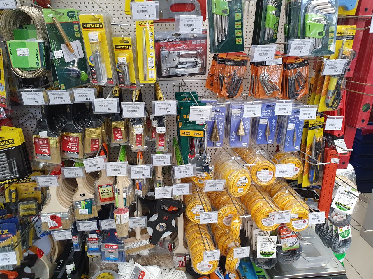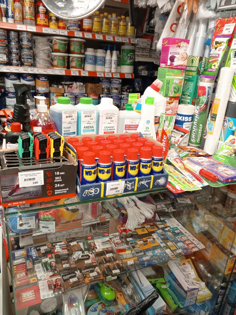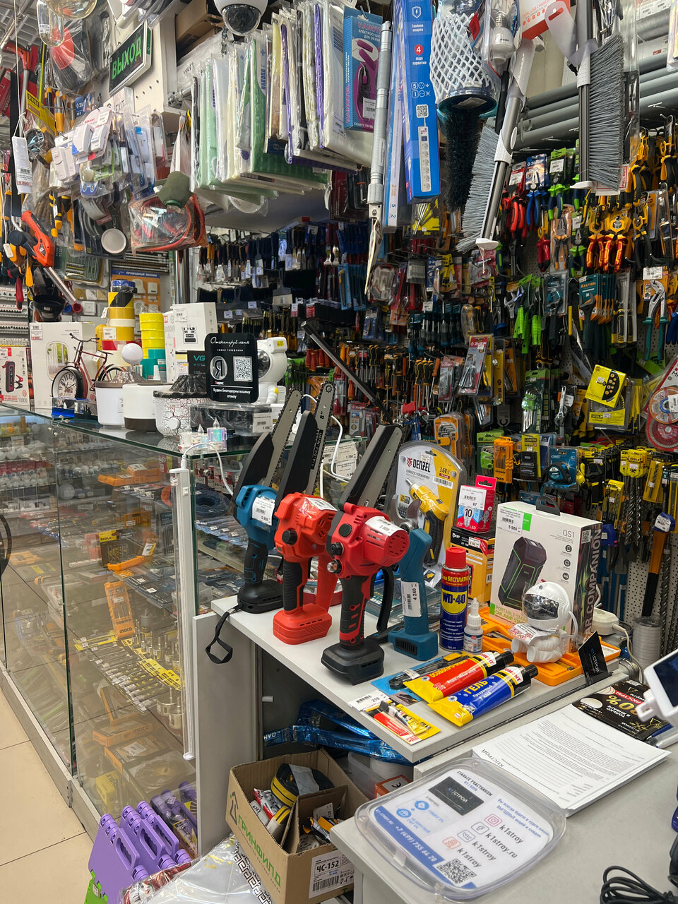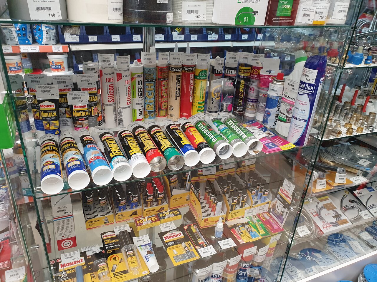Для такого маленького помещения многое есть в наличие. Это плюс. Но цены высоковаты. Например силикон в Леруа Мерлен стоит на 250 руб дешевле, чем в данном магазине. К тому же из-за тесноты сложно что-либо увидеть самому. Но для срочной покупки при необходимости можно воспользоваться.