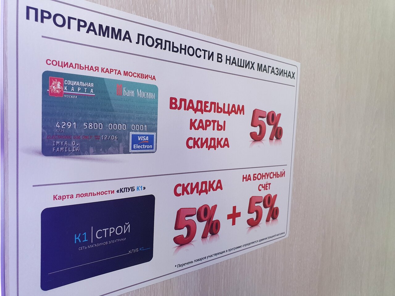 - Наличие скидочных накопительных карт