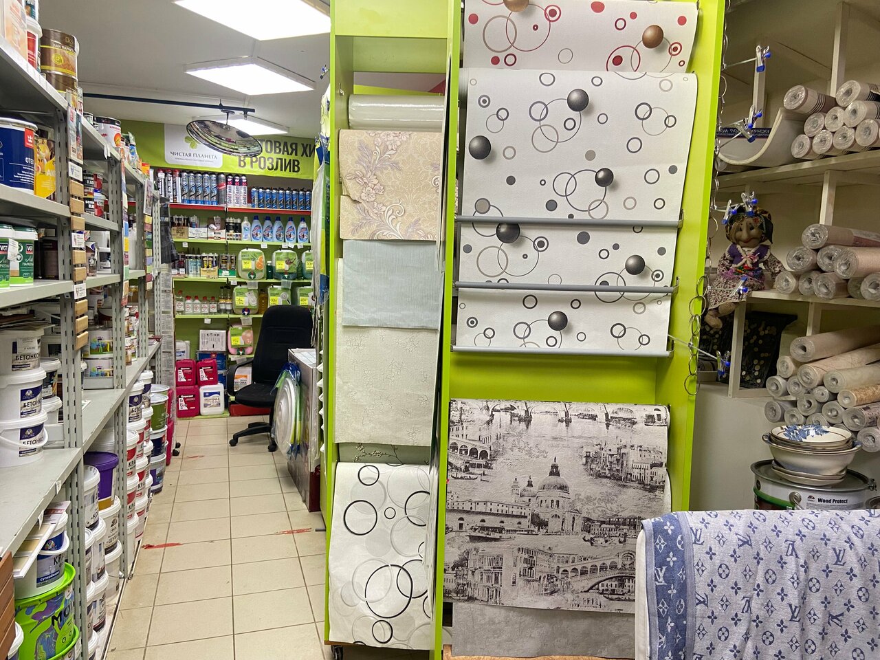 - Есть практически всё для квартирного ремонта (кроме цемента и кирпичей)