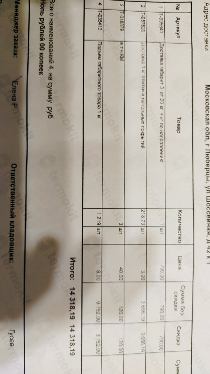 Ужасная работа Артёма ( тёплые полы) он в одностороннем порядке решил увеличить стоимость заказа, пришлось в свой выходной приехать в шоурум и редактировать заказ, оформлять возврат.