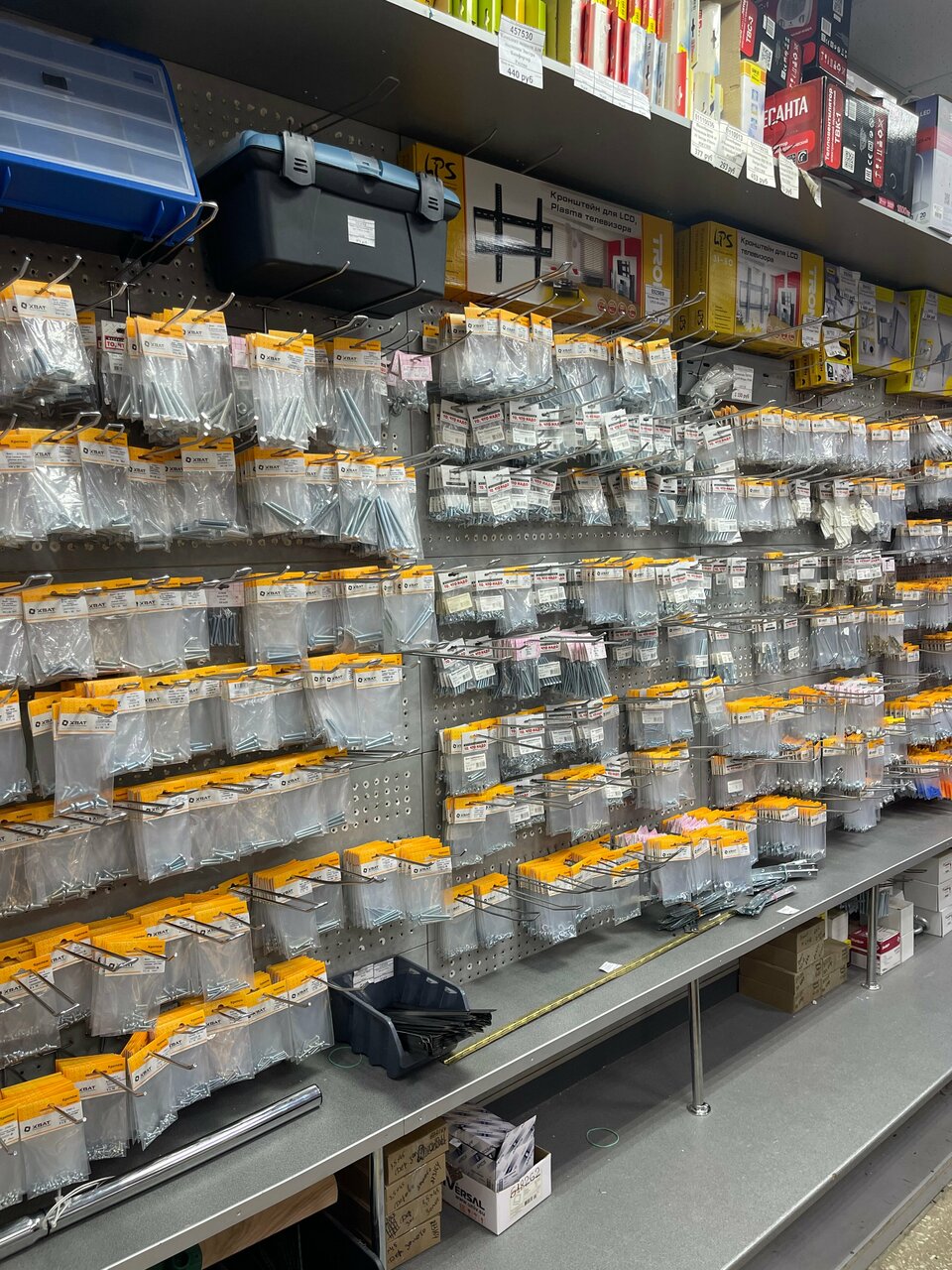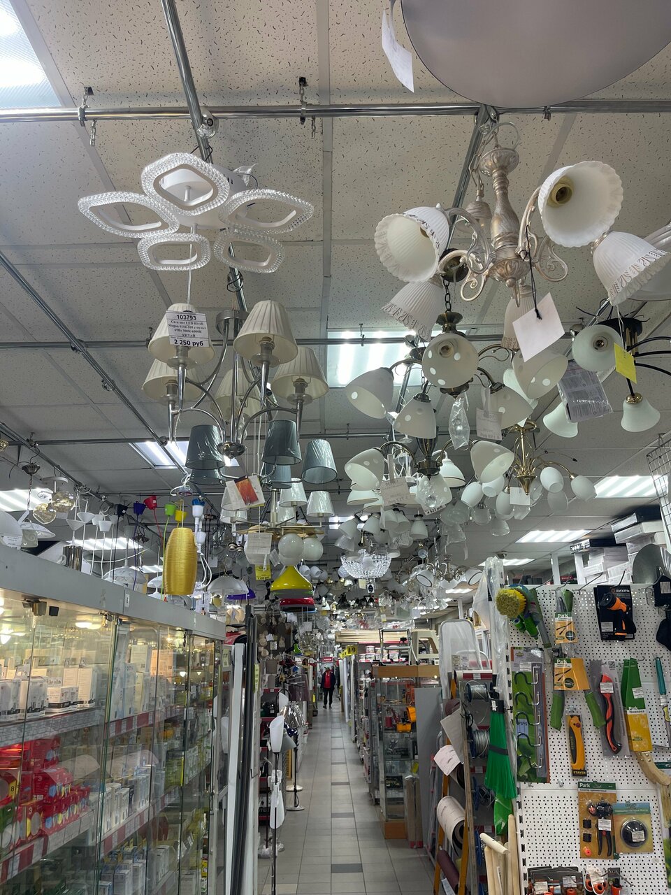 Разнообразный и большой ассортимент. Есть, практически, всё для хозяйственных неотложных нужд. Только способ покупки немного из советских времен. Продавец выписывает товар на бумажке, идёшь в кассу оплачиваешь и затем опять в отдел, где забираешь товар. Необычно!