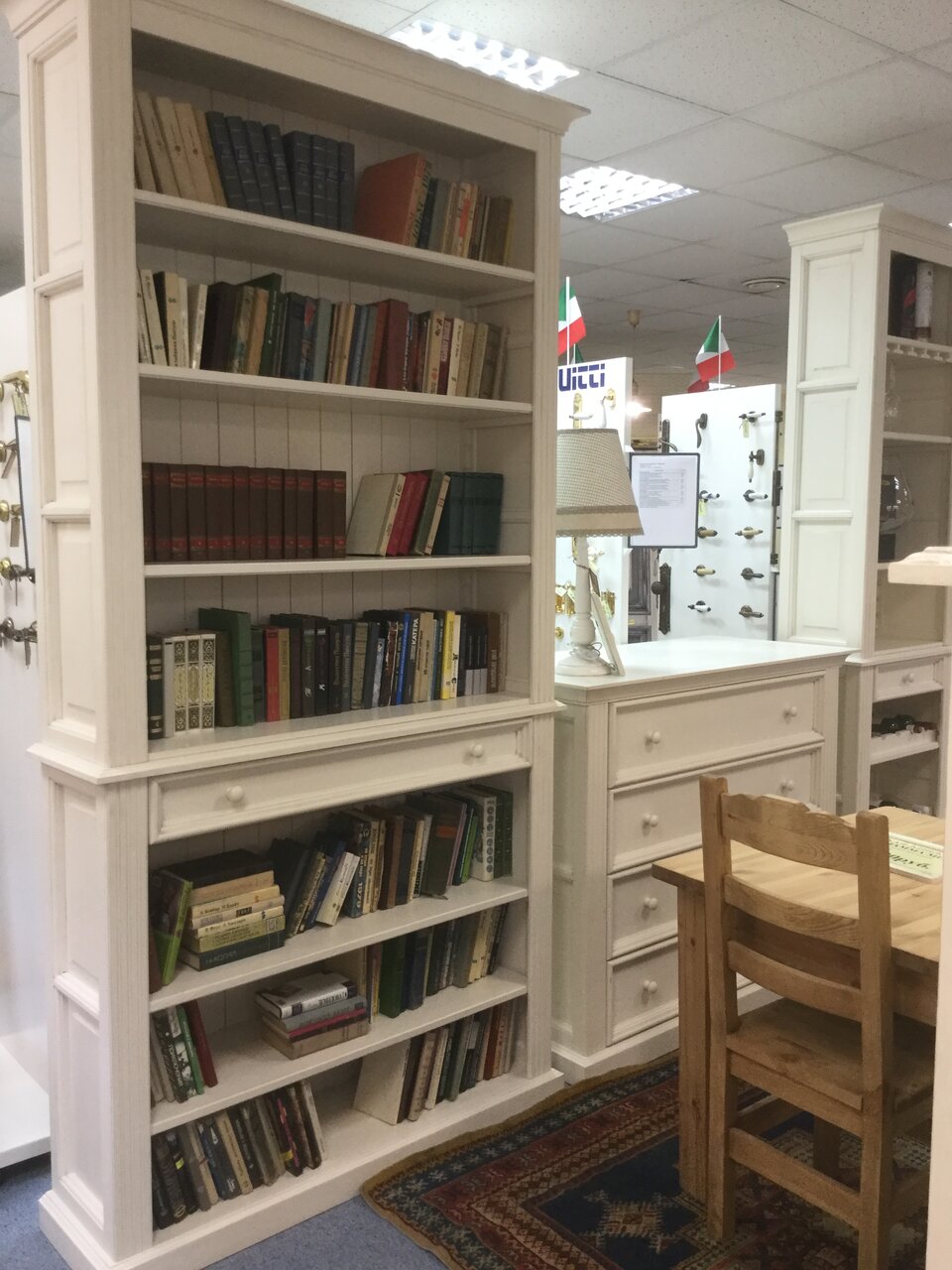 Магазин немного выше среднего,удобно что при магазине находится склад ,так же столярки и малярные цеха, где можно пройтись по цехам и подобрать или заказать для себя нужные изделия и цвета по более выгодным для себя ценам.