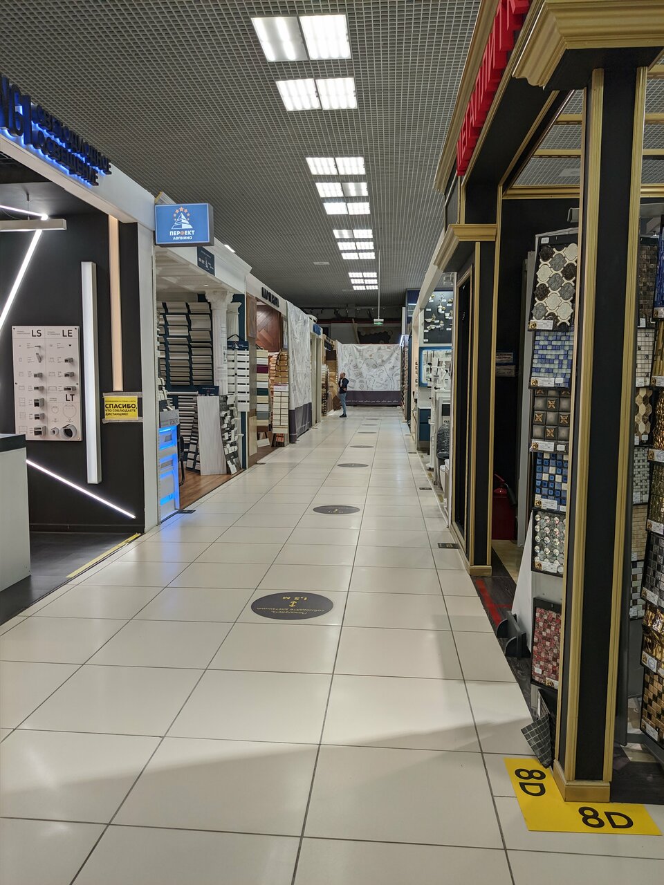 ТЦ старого плана.Мелкие павильоны.Много частных компаний.Но можно выбрать как сантехнику,так и мрамор,и тд.Остановкиирядом.А парковка платная.