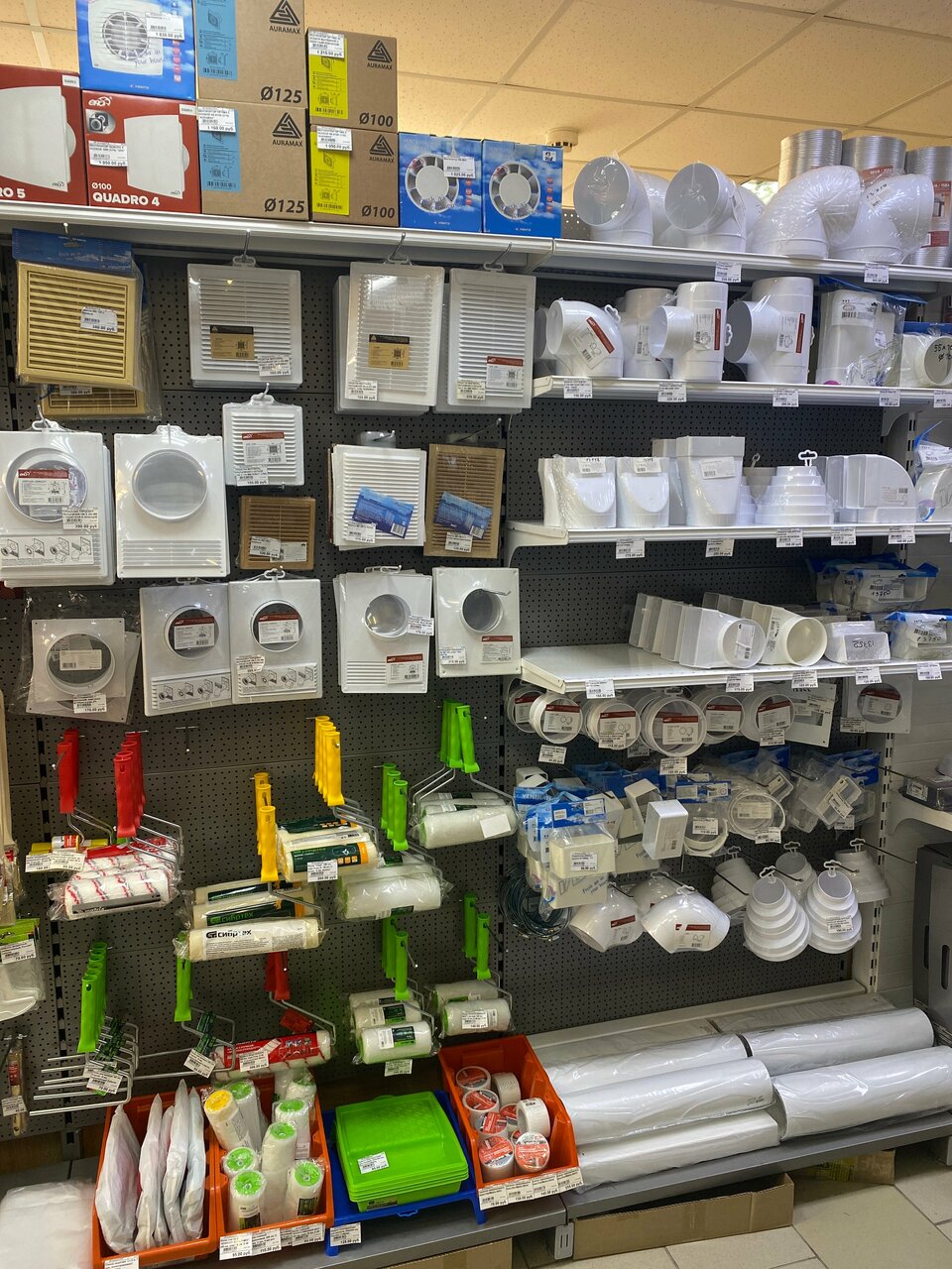 много всего, цены повыше, чем в Леруа и т.п., зато не надо далеко ехать, если что-то стряслось дома, тесновато. для настоящего ремонта там не стала бы искать материалы, но в экстренных ситуациях может выручить.