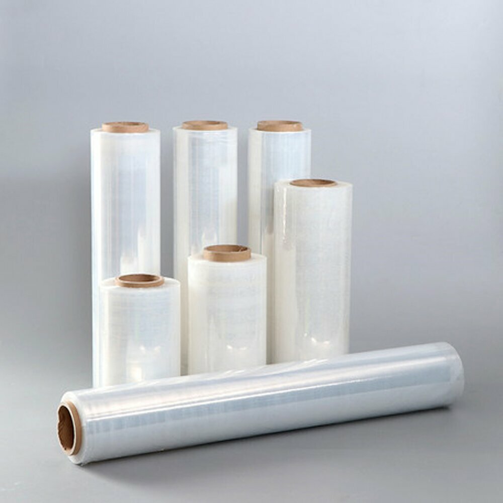 Стрейч плёнка прозрачная (первичное сырье). Вес ролика 1.4 кг, ширина 500 мм, толщина 17 мкм.