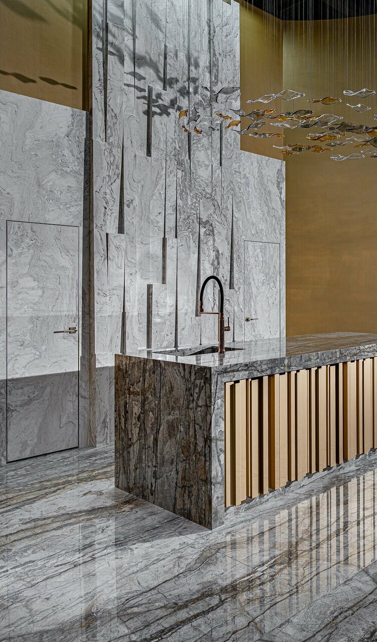 Большой выбор натурального камня , кварцевого агломерата и широкоформатной керамики высочайшего качества , все можно увидеть и потрогать, настоящее царство камня