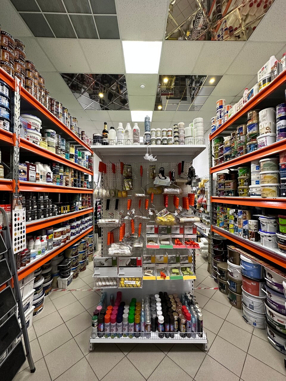 - Широкий ассортимент товаров (краски, инструменты, материалы для ремонта)
