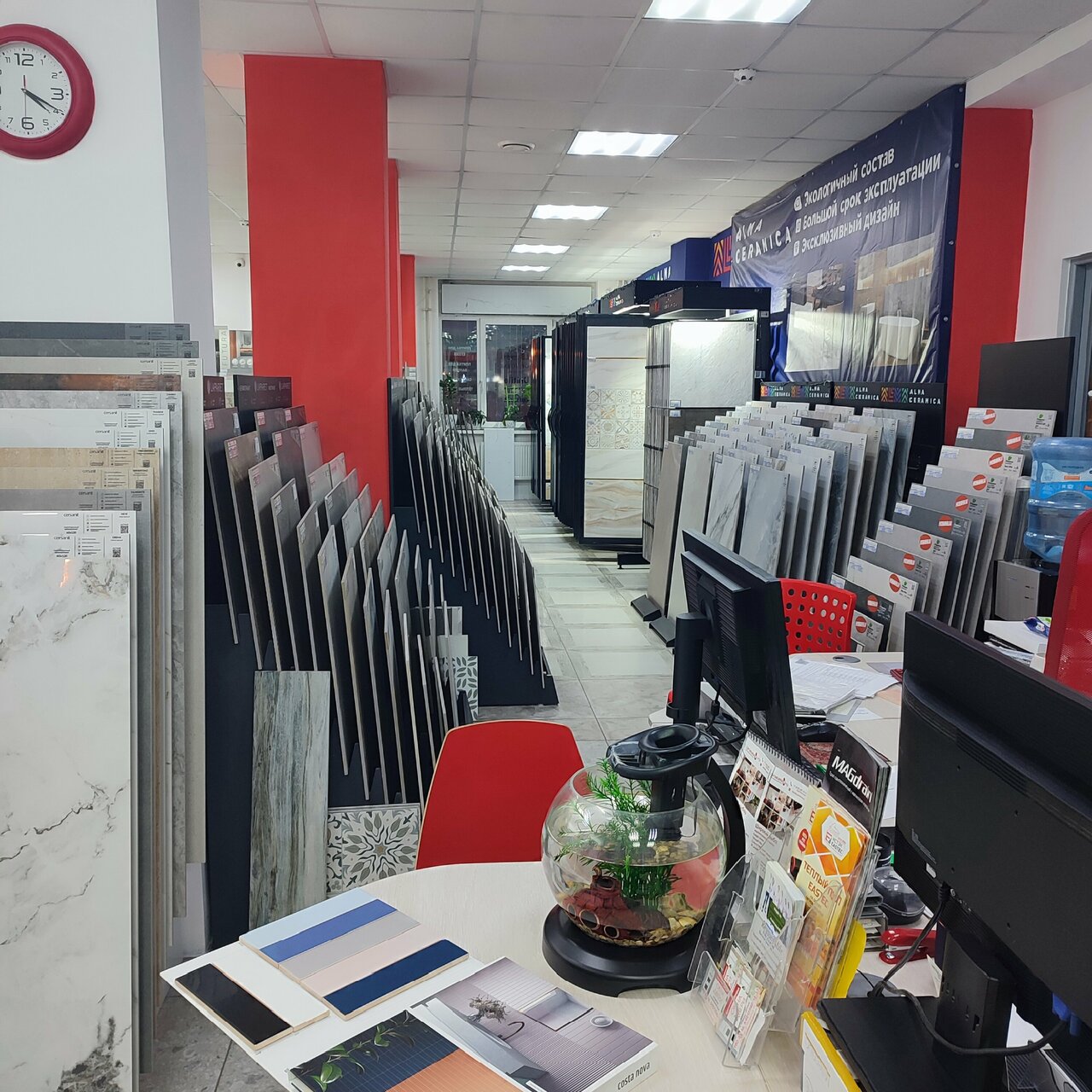 Хотели купить плитку- консультант даже не встала и не помогла с выбором! Какое-то самообслуживание..Ужасно! Купили плитку в другом месте.