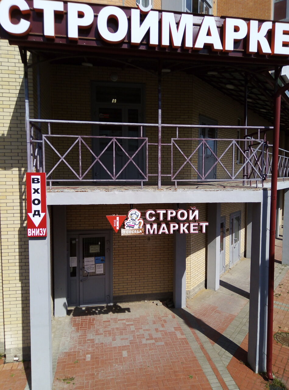 «У соседа» — строительный магазин в Мурино, расположенный по адресу: проспект Авиаторов Балтики, 13. Торговая точка предлагает широкий ассортимент люков для строительных и ремонтных работ. Режим работы: ежедневно с 10:00 до 20:00. Контактный телефон: +7 (953) 355-44-88.