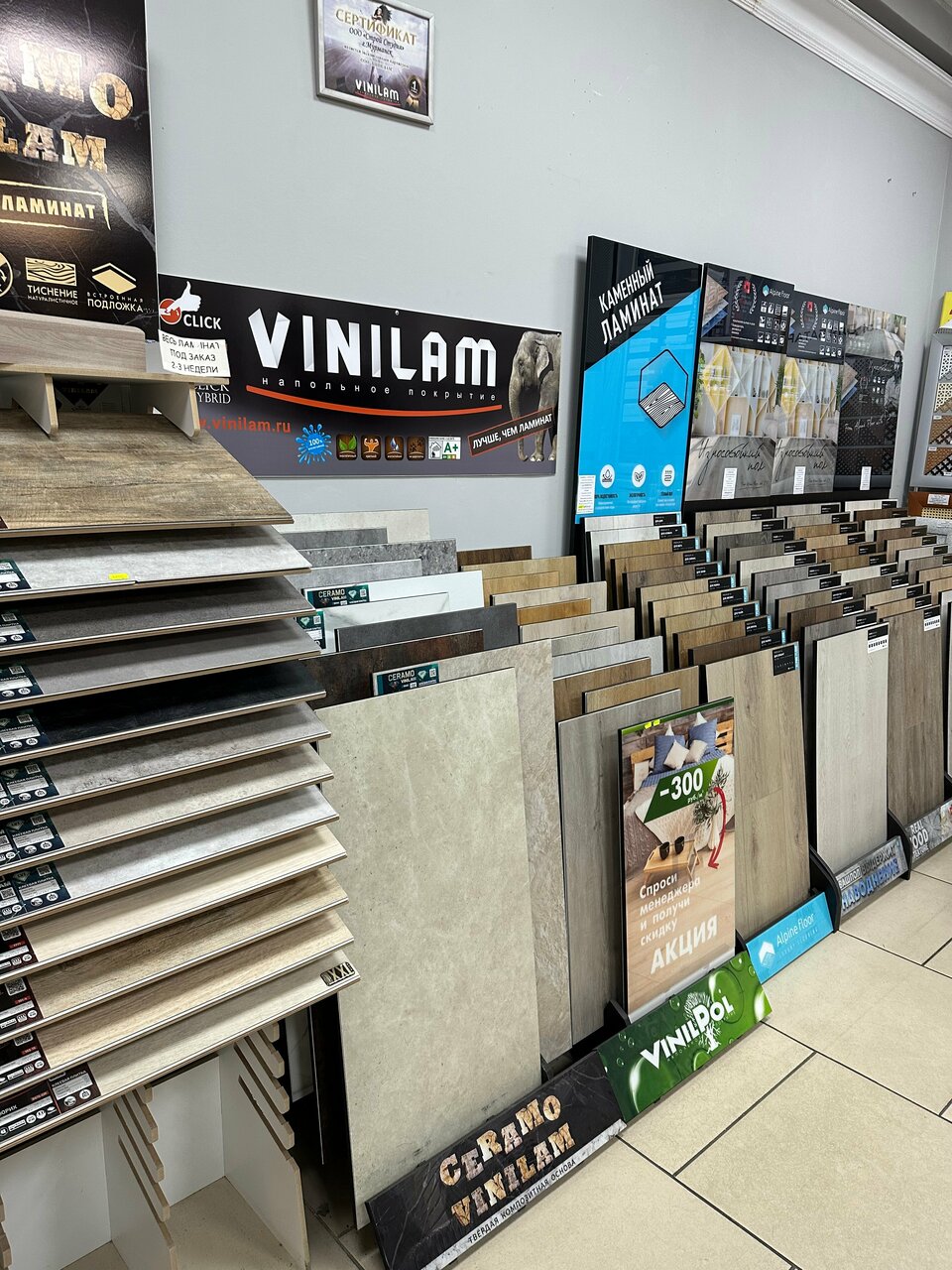 Хороший выбор напольного покрытия. Рекомендую. Всё, что надо, нашёл в м. СтройСтудия.