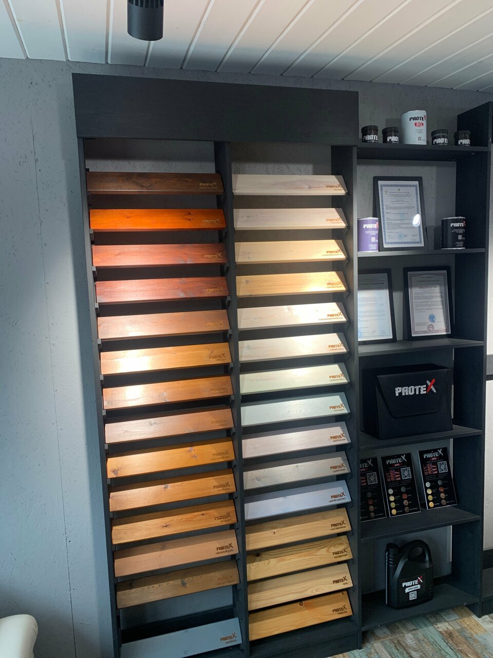 Хороший шоурум. Качественное масло, отличный герметик для срубов. Удобная стоянка.