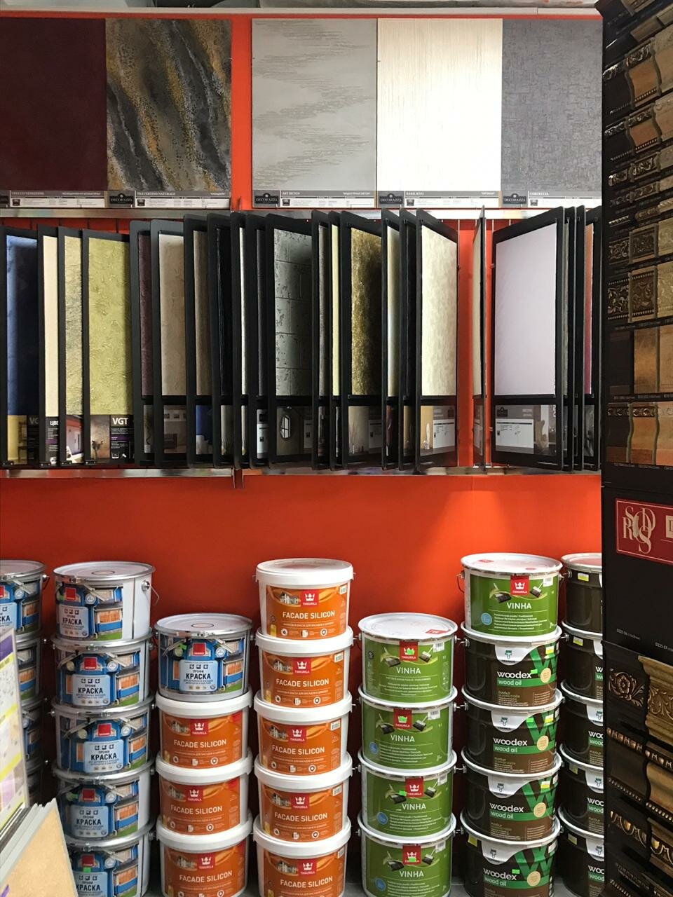 Заехав в этот магазин, решил сразу же купить не только матовую фасадную краску Тиккурила для деревянной поверхности, но и грунтовочный антисептик для дерева. Продавец-консультант помог мне рассчитать количество необходимого материала для приобретения. Все покупки оплатил банковской картой. Доволен, что все нашлось в наличии в одном месте. Это сэкономило мое время. Цены здесь приемлемые, рекомендую.