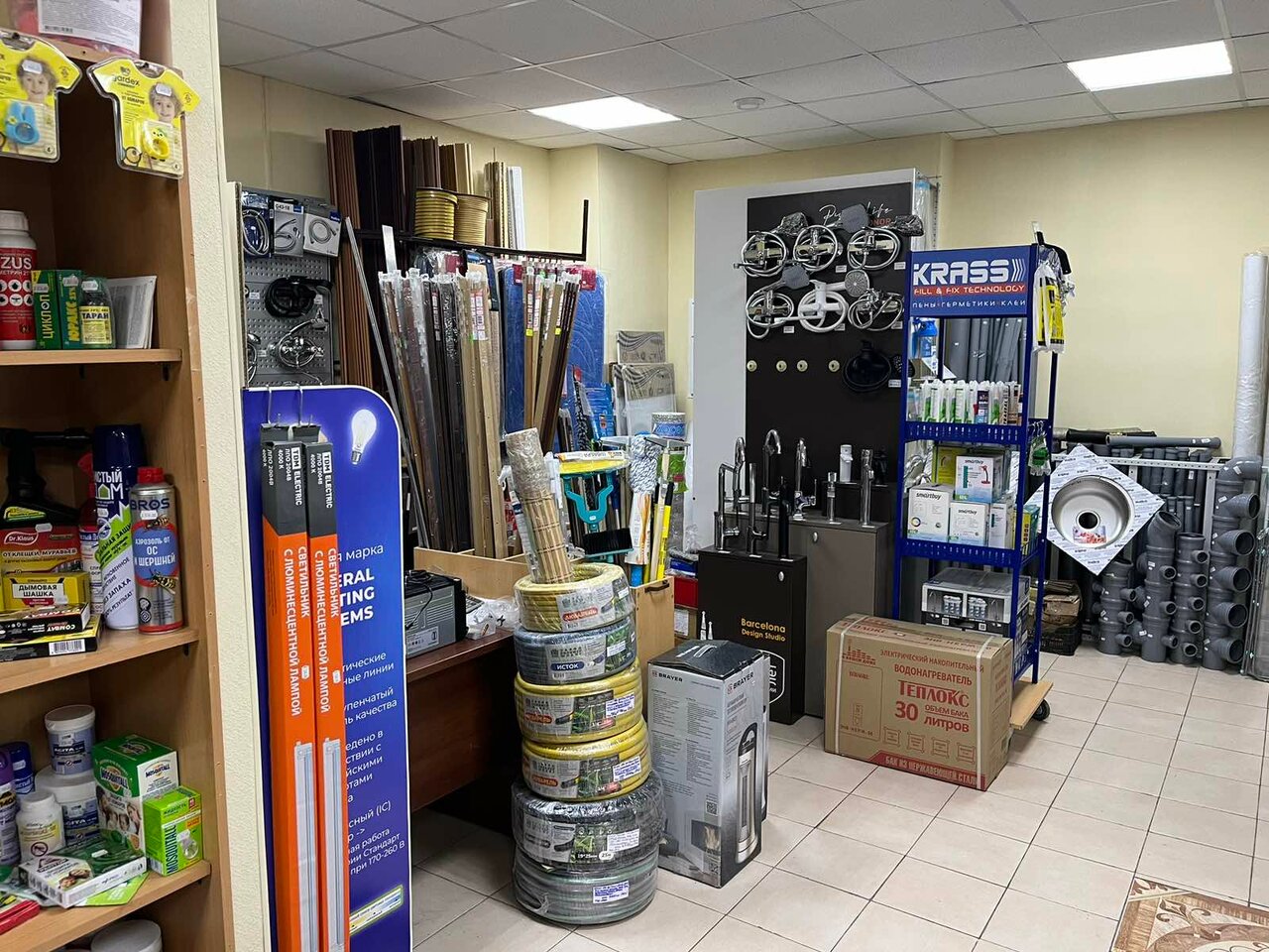 Магазинчик мне очень понравился. Большой ассортимент. Продавец приятный мужчина, всё подробно рассказал, показал, посоветовал, перепроверил наличие всех комплектующих (брали полотенцесушитель).