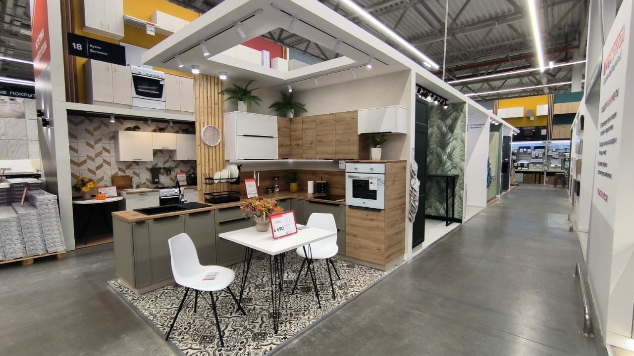 Большой выбор необходимых товаров. Ассортимент радует. Огорчает количество сотрудников консультантов приходиться очень долго ждать. Особенно о дел дверей!