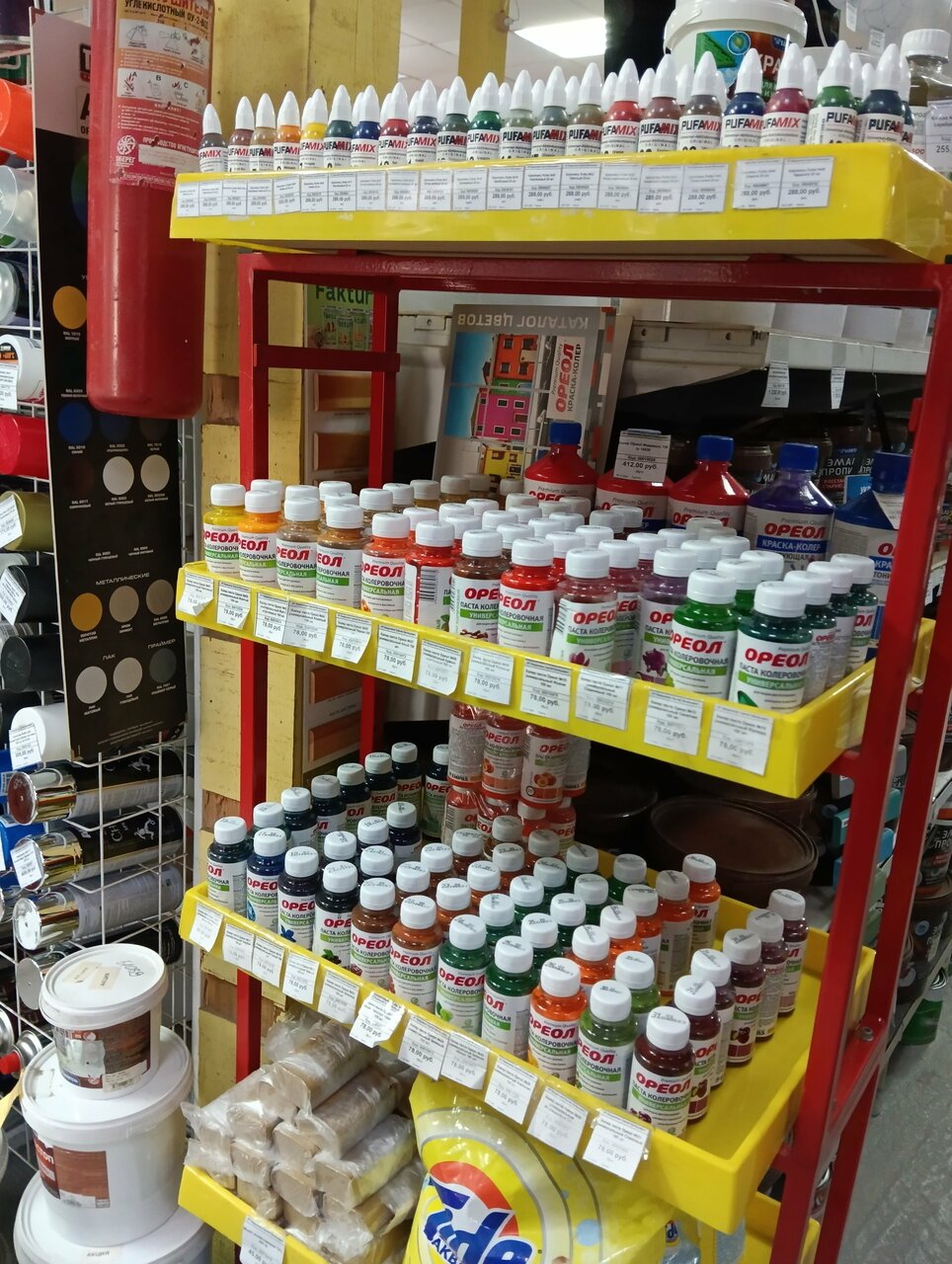 Не большой магазин, можно купить необходимые стройматериалы и инструменты для ремонта.