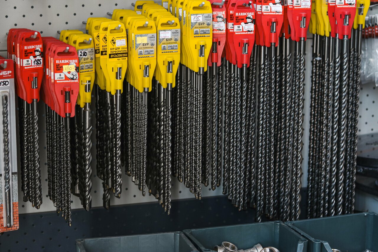- Большой ассортимент товаров (от мелких гвоздей до шуруповертов)