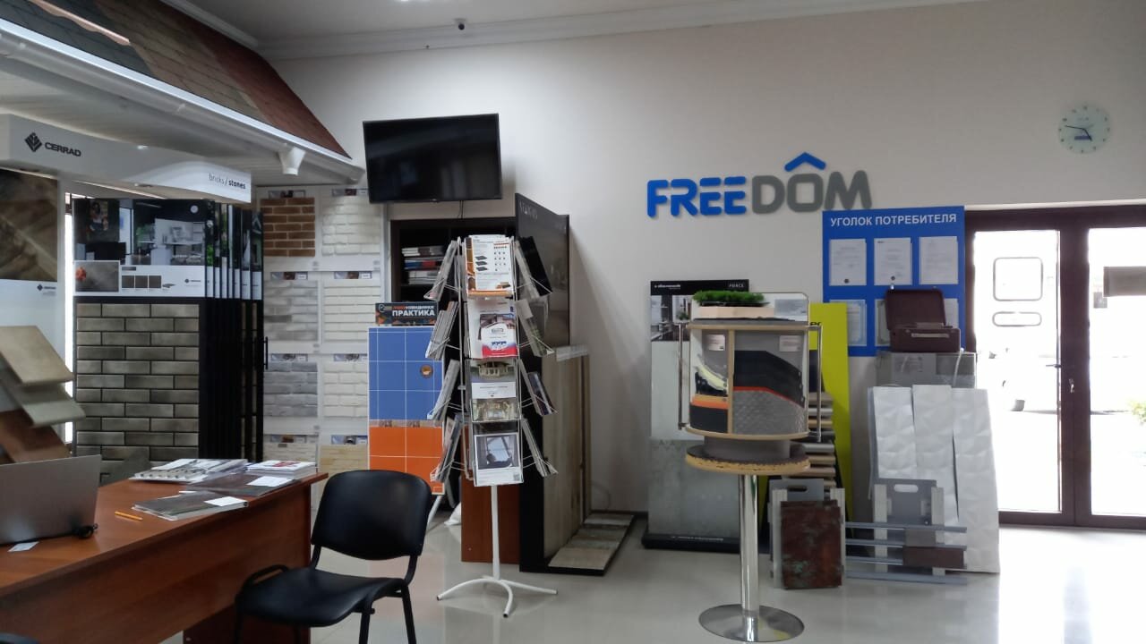 ТД Freedom — строительный магазин в Нальчике, предлагающий широкий ассортимент кровельных материалов. В ассортименте: фальцевая и сланцевая кровля, металлочерепица, профнастил, битумная и керамическая черепица.