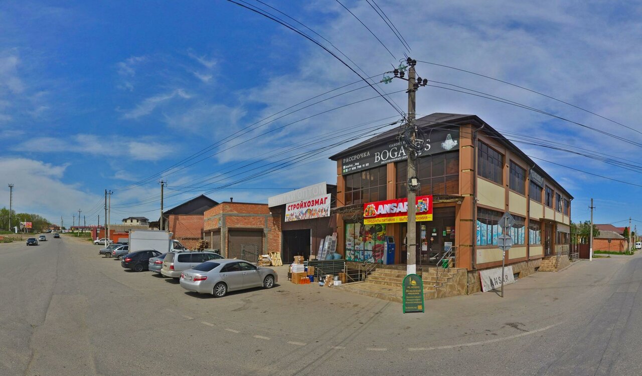 Хороший строительный магазин. Много чего из инструментов и стройматериалов покупал в этом магазине. Строительство нашего дома расположено ‘За каналом’ в Альтиевском АО г. Назрань на 1 км севернее от данного магазина, очень удобно когда что-нибудь нужно купить. Продавец — хозяин магазина и отлично разбирается в ассортименте необходимого товара. Реккомендую данный магазин.