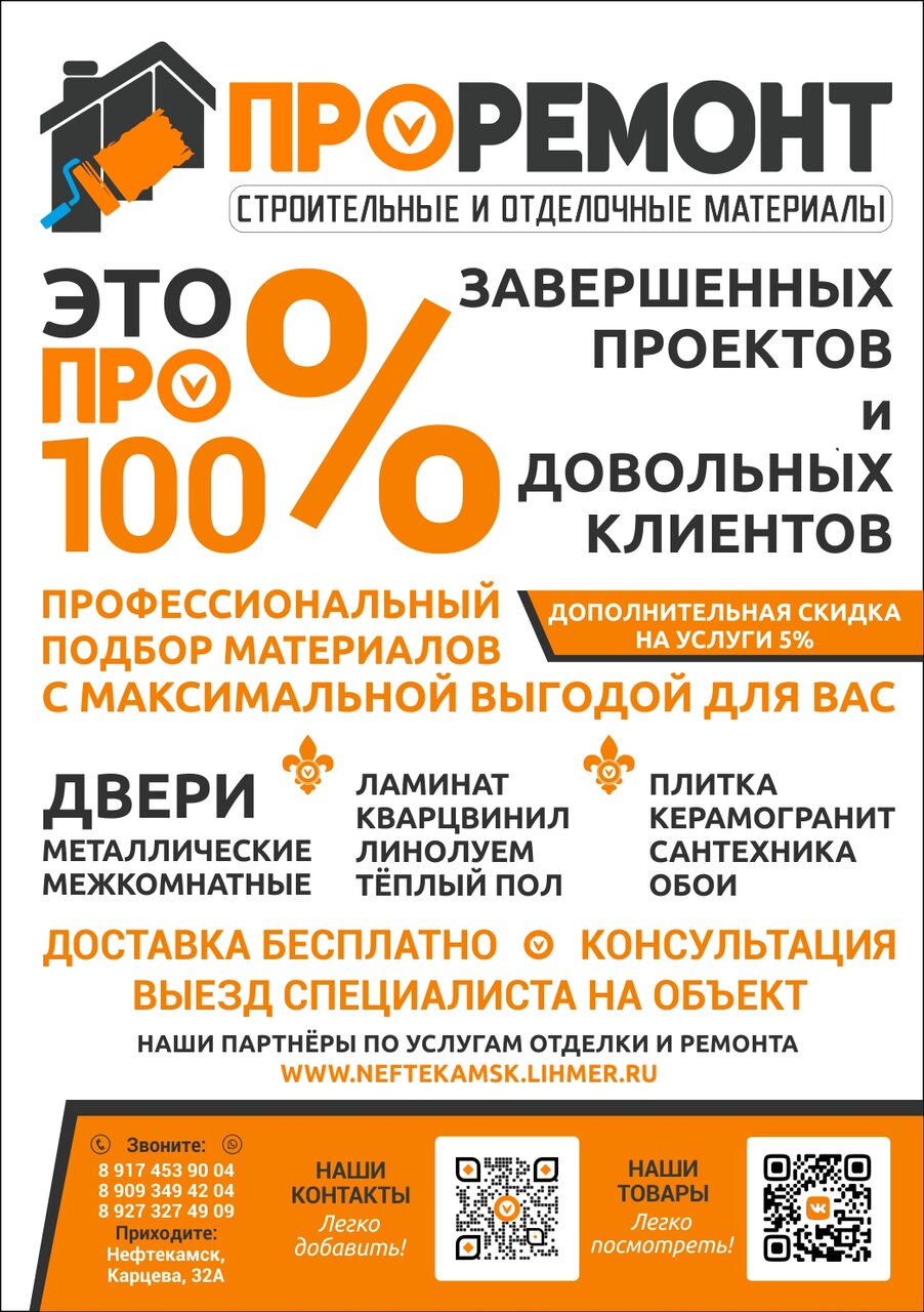 📍 Адрес: ул. Строителей, 38 📅 Режим работы: Пн–Пт: 10:00–19:00 Сб–Вс: 10:00–17:00 📞 Телефоны: +7 (909) 349-42-04, +7 (927) 327-49-09 🌐 Сайт: (https://vk.link/proremont102)