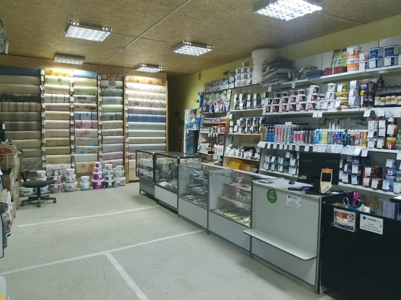 Хоть магазин не большой но ассортимент хороший есть все что нужно начиная от гвоздя и заканчивая строительным материалом очень удобно и цены адекватные