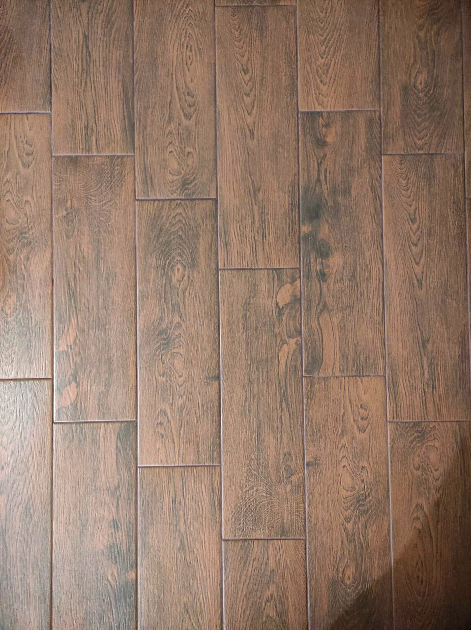 - Удалось найти редкий оттенок (темно-коричневый керамогранит под дерево)