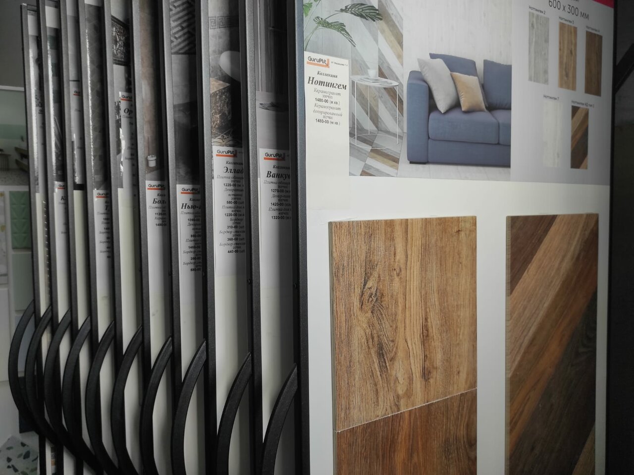 Отличный магазин! Ассортимент очень большой, плитки керамические и керамогранит на стендах от разных фирм — листать-неперлистать… До сих пор не могу выбрать что выложить в ванную На пол в квартире положили керамогранит поддерево. Очень довольны, долго искали подходящий оттенок. Плитка под дерево восановном светлая или сероватая, нам нужен был коричневый темный цвет. Такую нашли только здесь, на ощупь очень приятная, теплая даже, похожа на пркет на ощупь!