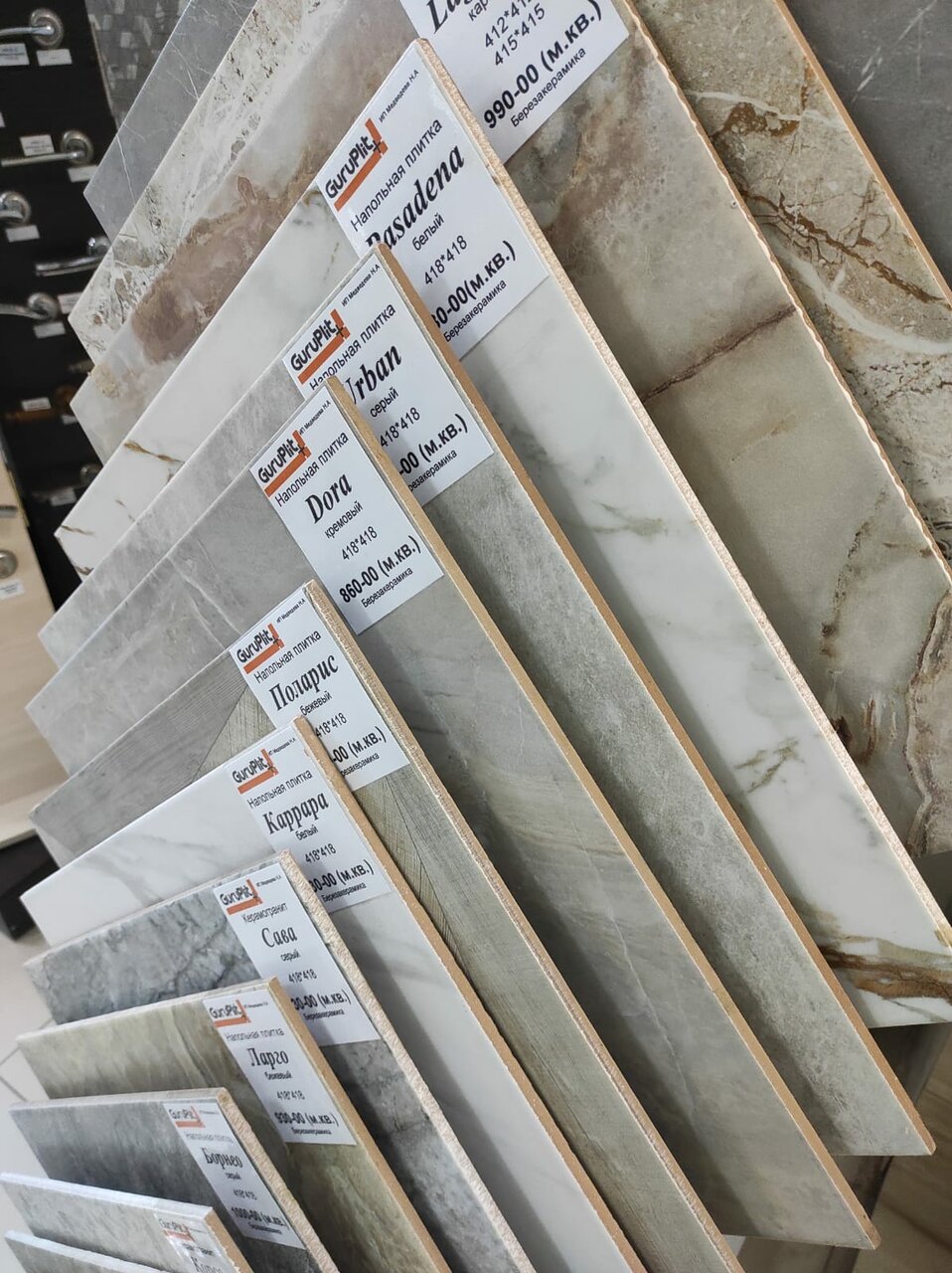 - Большой ассортимент плитки и керамогранита