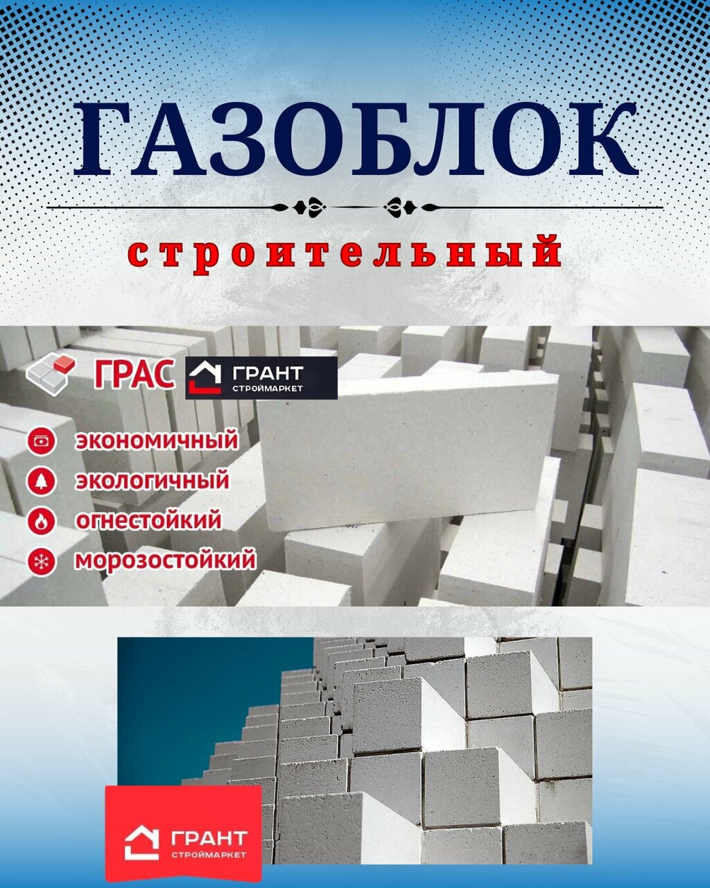 Грант – строительный магазин в станице Незлобная, предлагающий широкий ассортимент материалов для строительства и ремонта. В наличии газобетон, люки и сопутствующие товары.