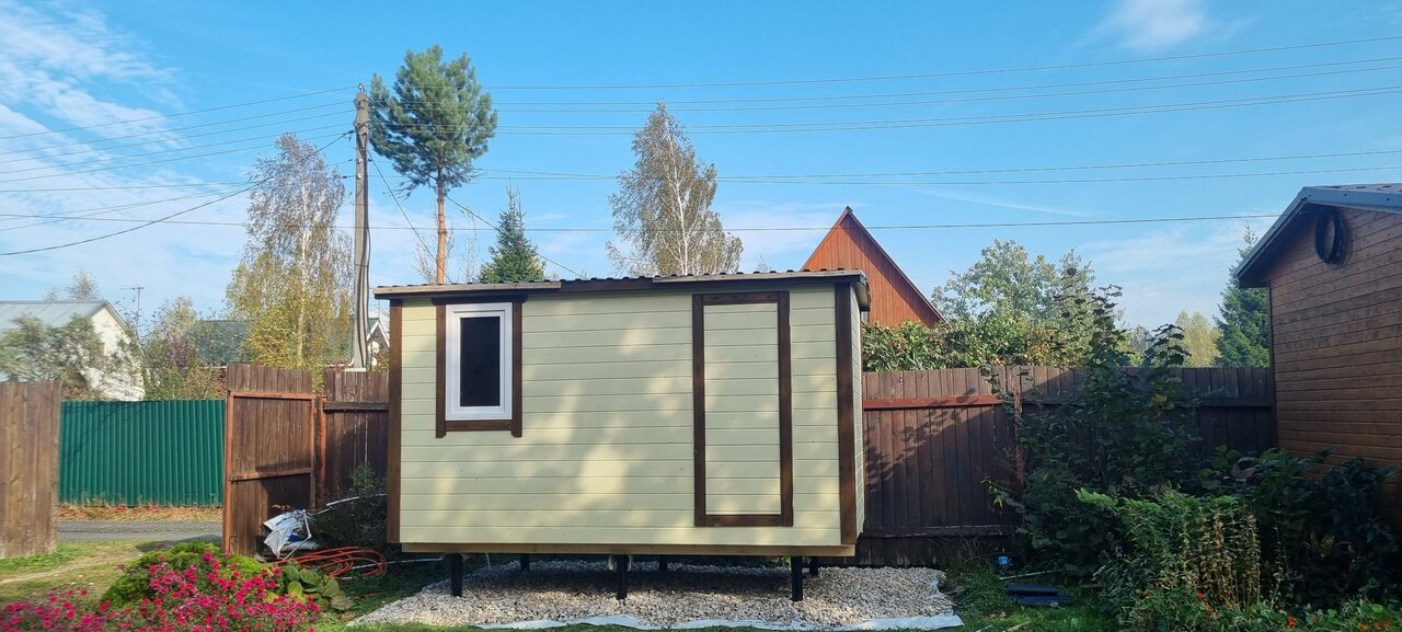 Бытовку покупала 2 года назад. Минусы: 1. Использован низкосортный деревянный материал — всё в дырах, замазанных пеной с покраской. 2. Окно внутри без отделки. 3. Листы крыши плохо соединены (с щелью). 4. Зимой внутри вся вагонка в гармошку превратилась, весной не расправилась. 5. Доски для крепления под бытовкой полутрухлявые. Плюсы: Недорого (относительно) приобрели и, подремонтировав, продолжаем пользоваться.