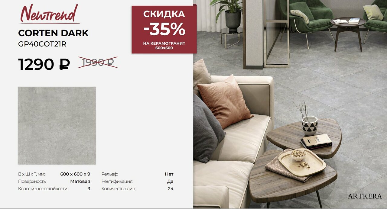 - Широкий ассортимент (плитка, кварцвинил, ламинат, двери)