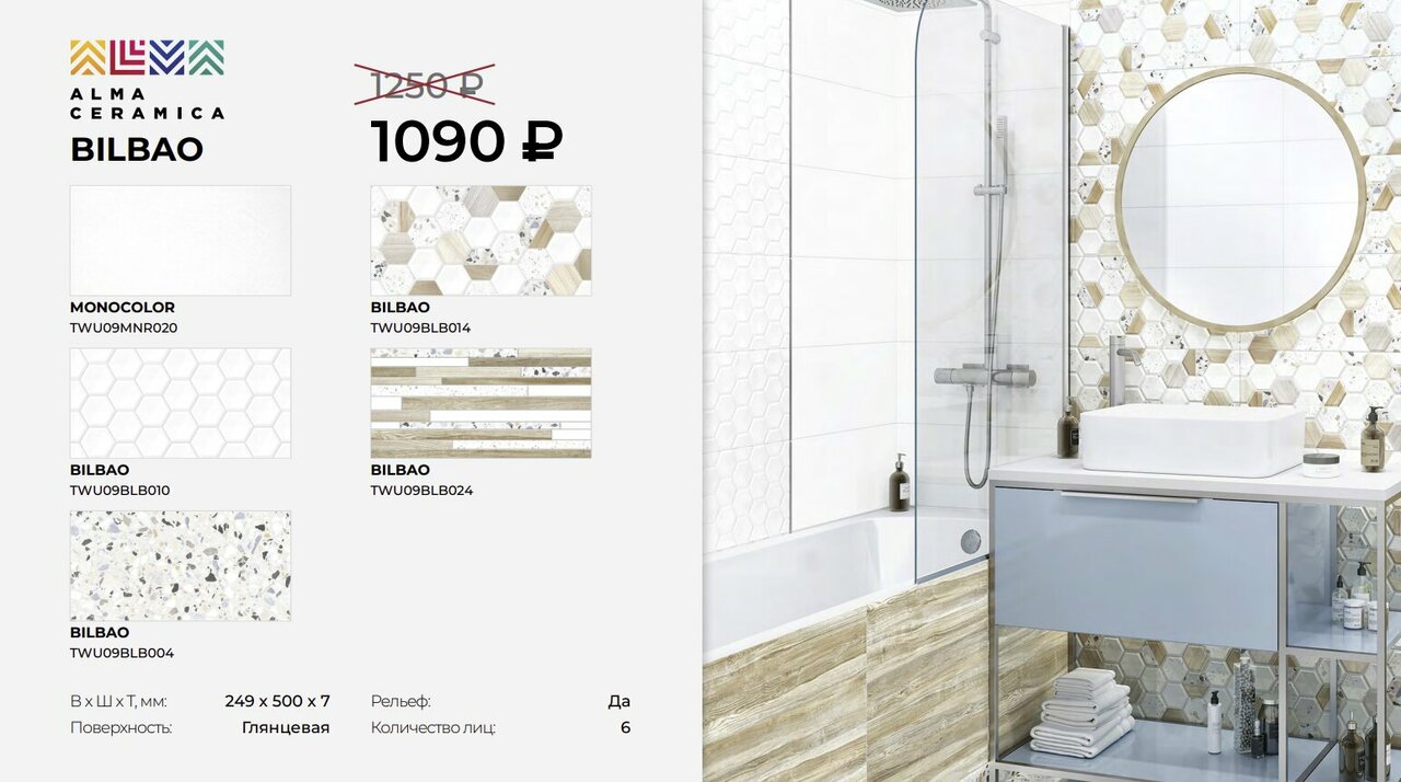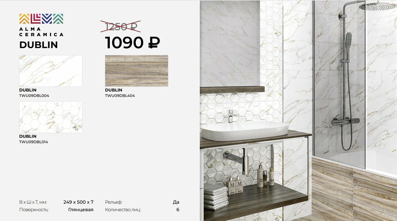 Хорошая и разнообразная плитка есть разные варианты и керамогранита большого формата и настенной керамики на любой вкус !