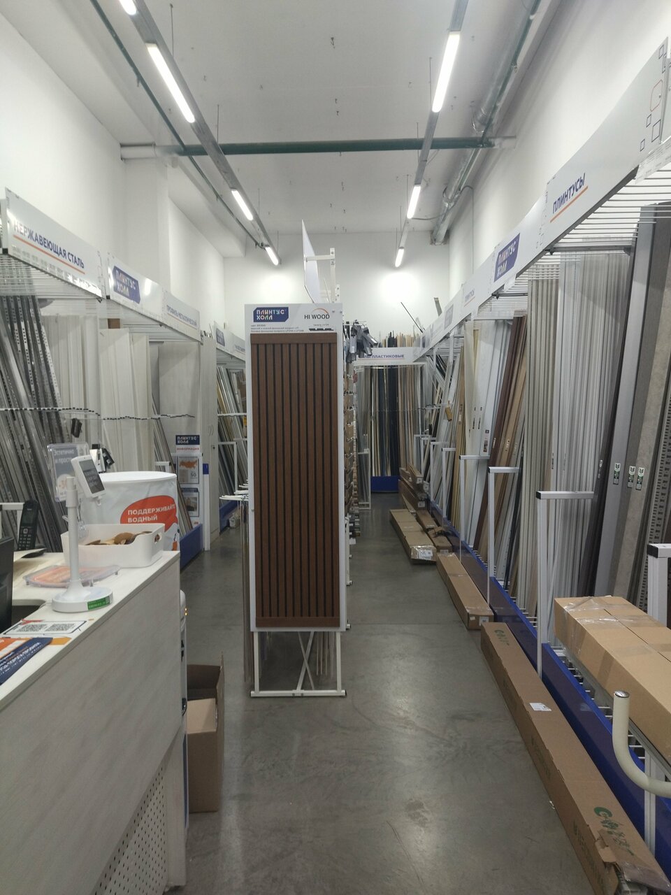 - Быстрое и качественное обслуживание; Профессиональные консультации и помощь в подборе; Возможность подбора плинтусов под цвет дверей и линолеума; Удобное расположение (некоторые не смогли найти нужное в других магазинах).; Компетентные и вежливые продавцы