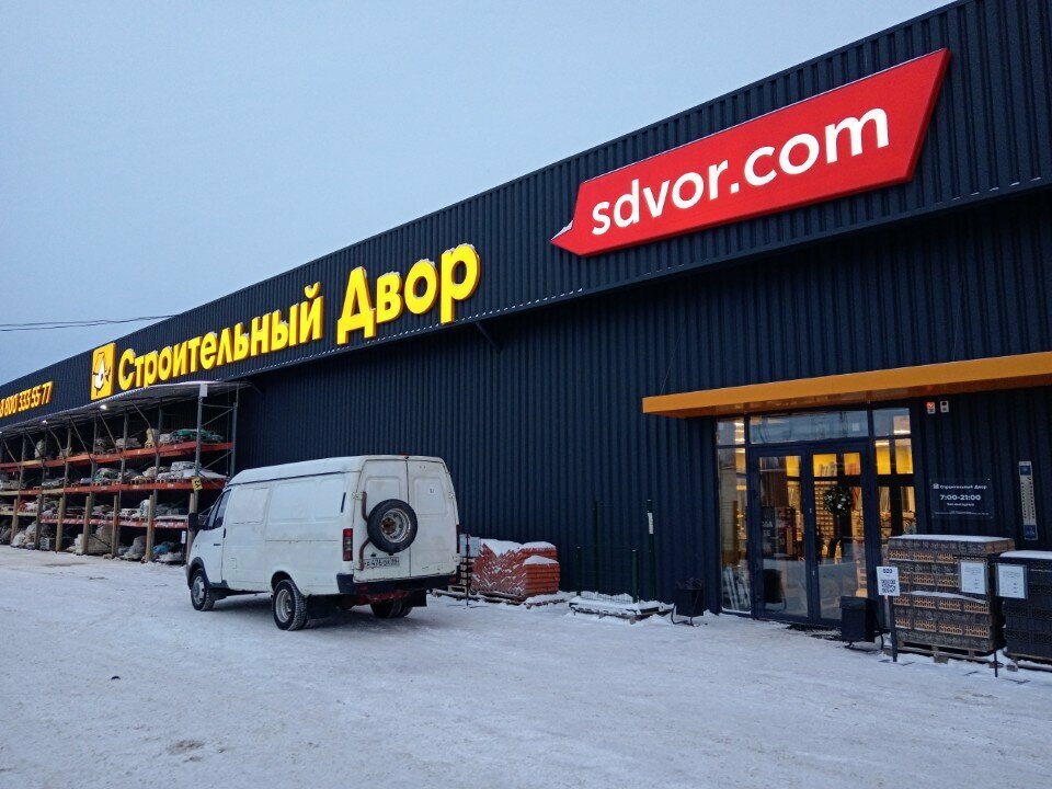 Строительный двор — магазин строительных материалов в Нижневартовске, расположенный по адресу: ул. Индустриальная, 34, стр. 2. Ассортимент включает природный камень, люки, стеновые панели, газобетон и другие товары для ремонта и отделки. Работает ежедневно с 07:00 до 21:00. Контакты: сайт (https://www.sdvor.com/), телефон 8 (800) 333-77-19.