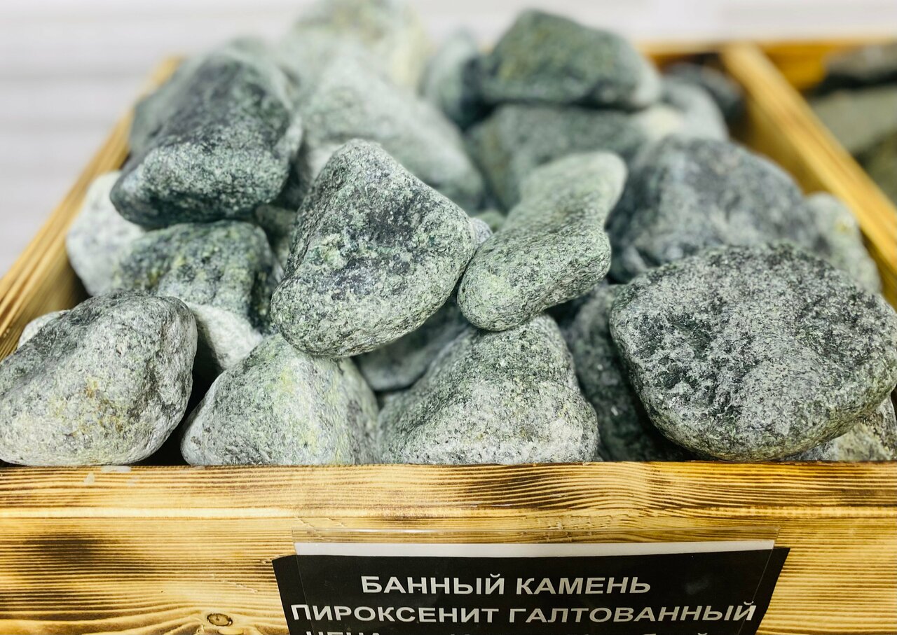 Пироксенит подходит для открытых и закрытых каменок, прочный , хорошо накапливает и держит тепло.
