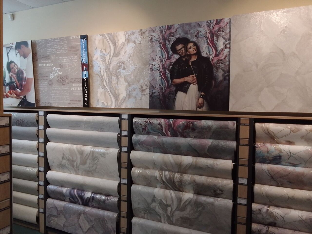 Очень богатый выбор, можно подобрать обои на любой вкус. В основном, светлые , пастельные тона и широкие,мало узких, мне везёт , я только здесь нахожу то, что мне нужно, продавец охотно и понятно проконсультировала по поводу клея, спасибо, я довольна, что магазин в шаговой доступности.