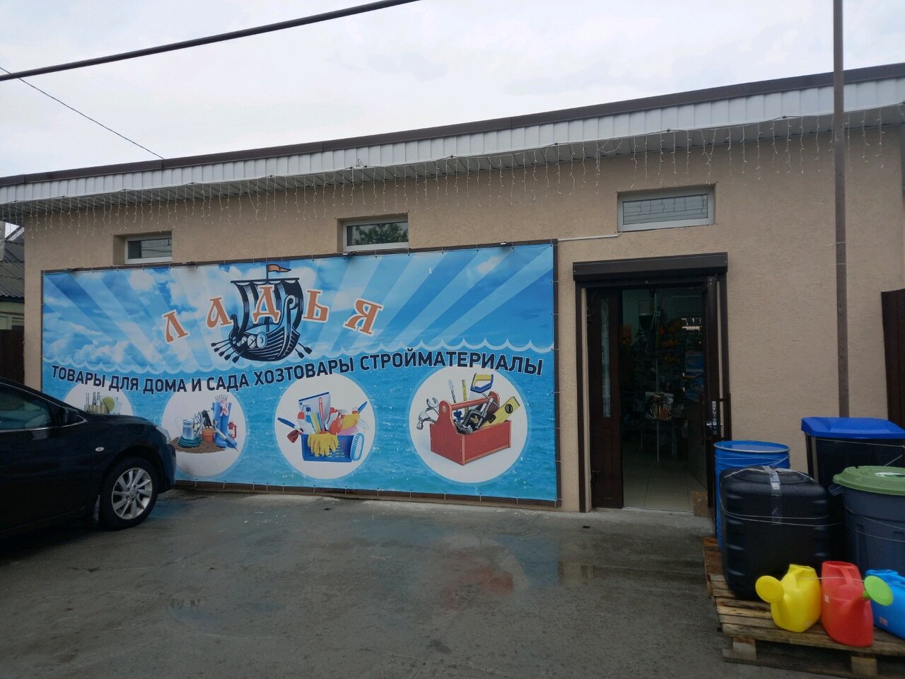 - Небольшой, но хороший ассортимент хозяйственных товаров; Уникальный для поселка магазин.; Очень большой ассортимент товаров; Есть даже цемент; Наличие парковки