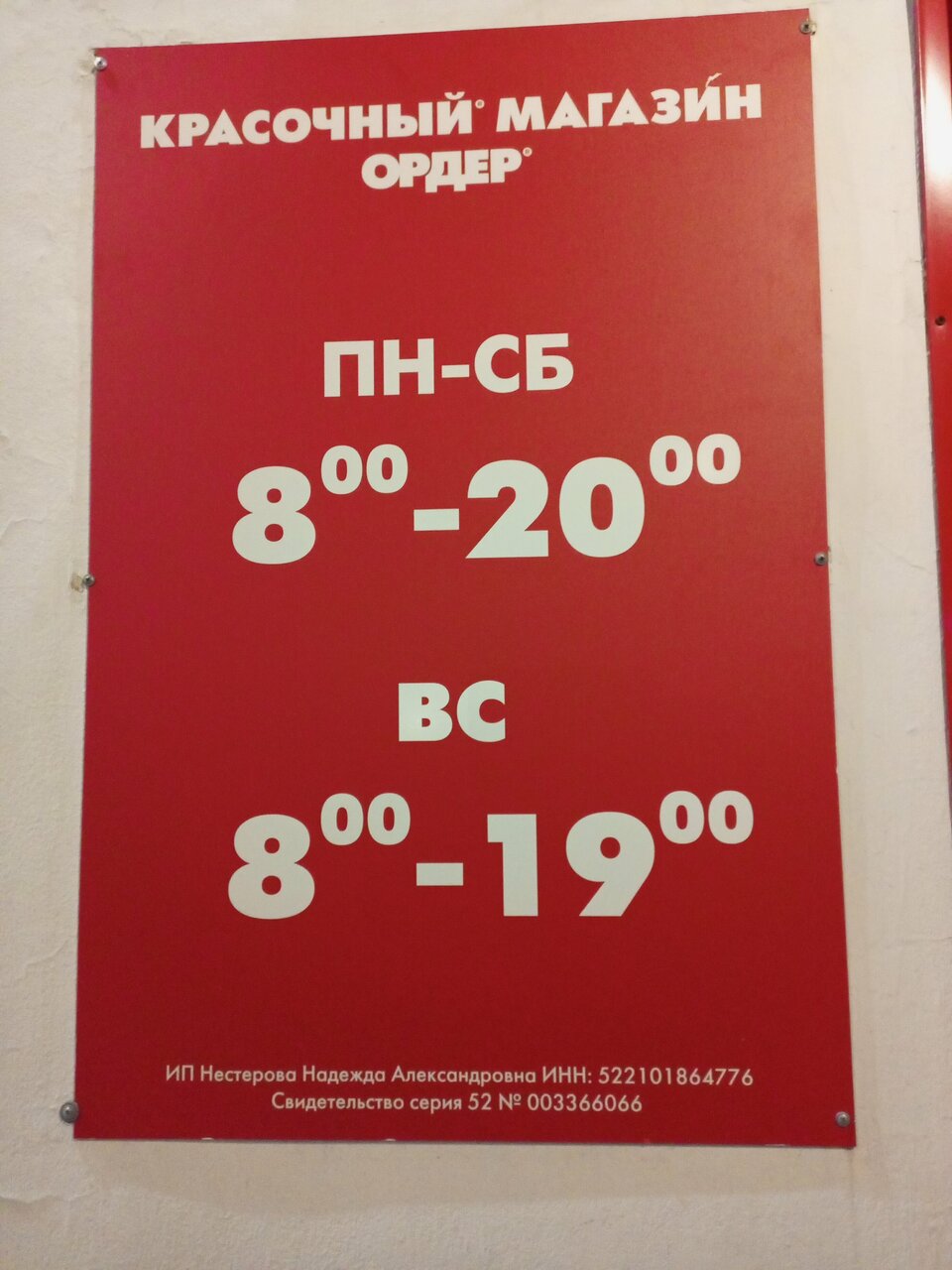 Режим работы: Пн–Сб: 08:00–20:00 Вс: 08:00–19:00