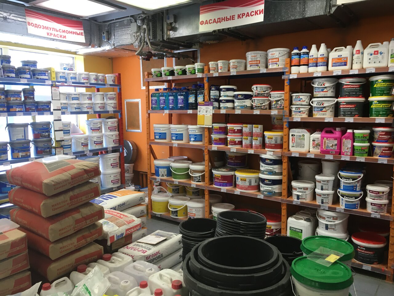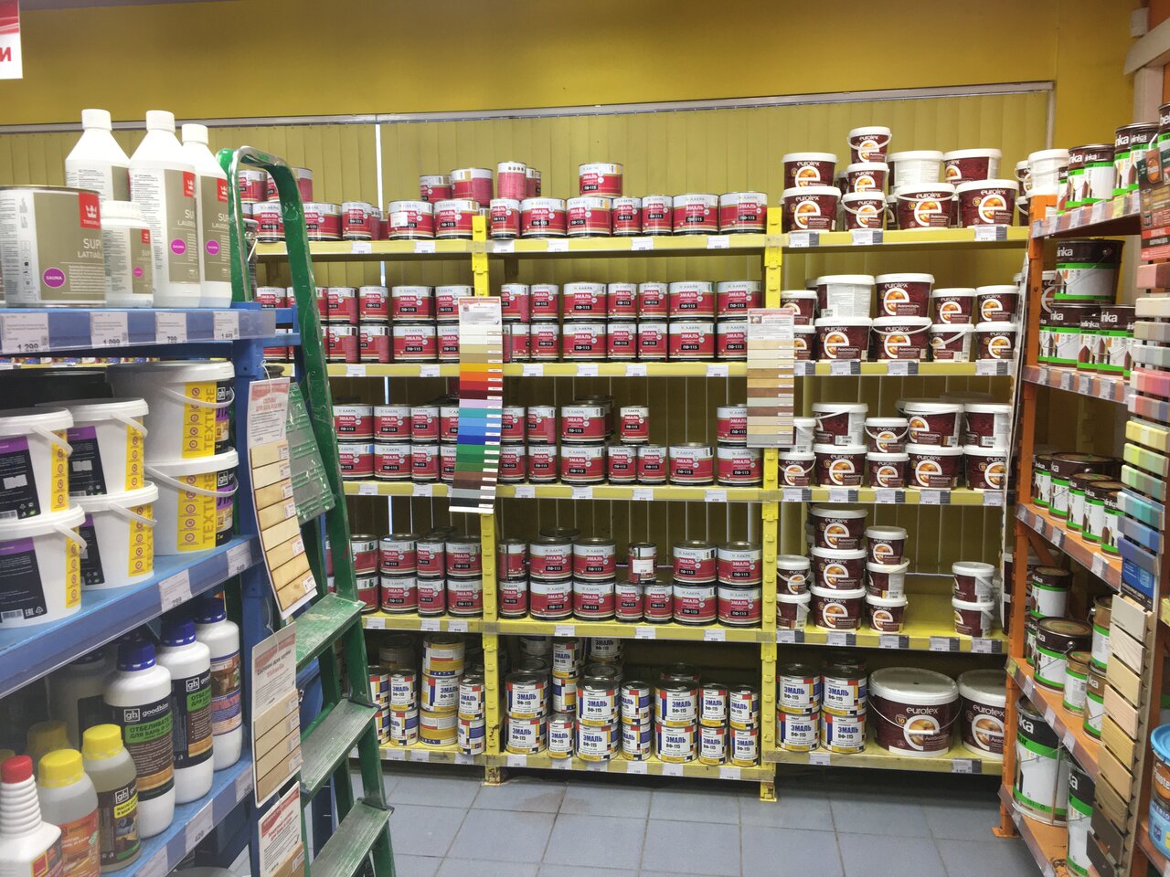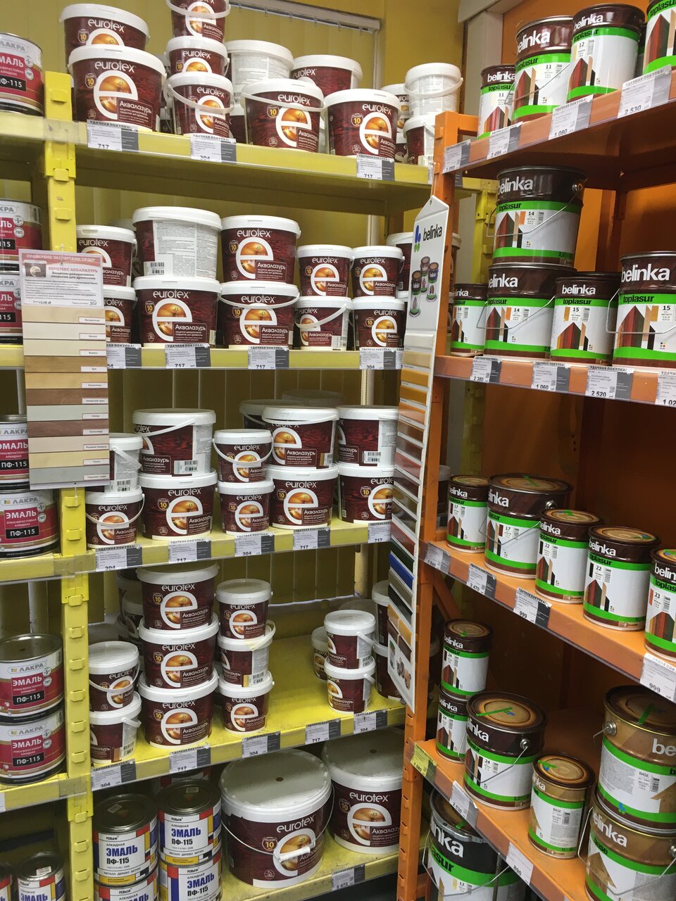 Большой выбор красок, инструмента . продавцы всегда подскажут, где какой товар и что лучше подходит для выполнения определённых работ