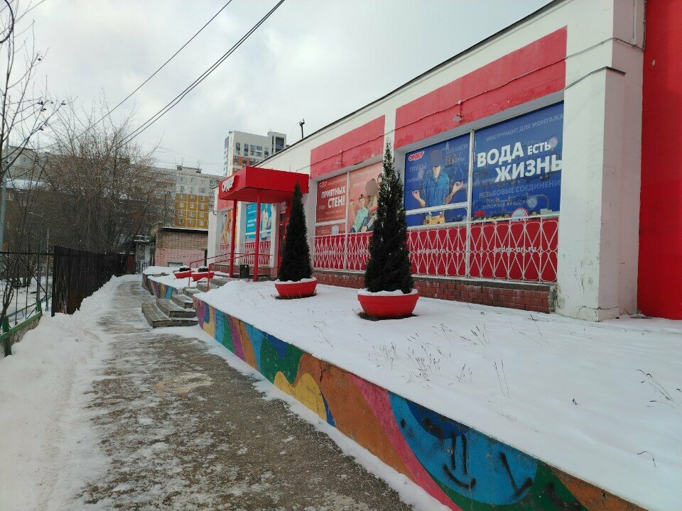 - Народа и очередей нет; Удобное расположение (близко к дому); В целом положительный опыт (25 лет без нареканий); Помощь с подбором красок и колеров; Можно найти всё для сантехники и отделки