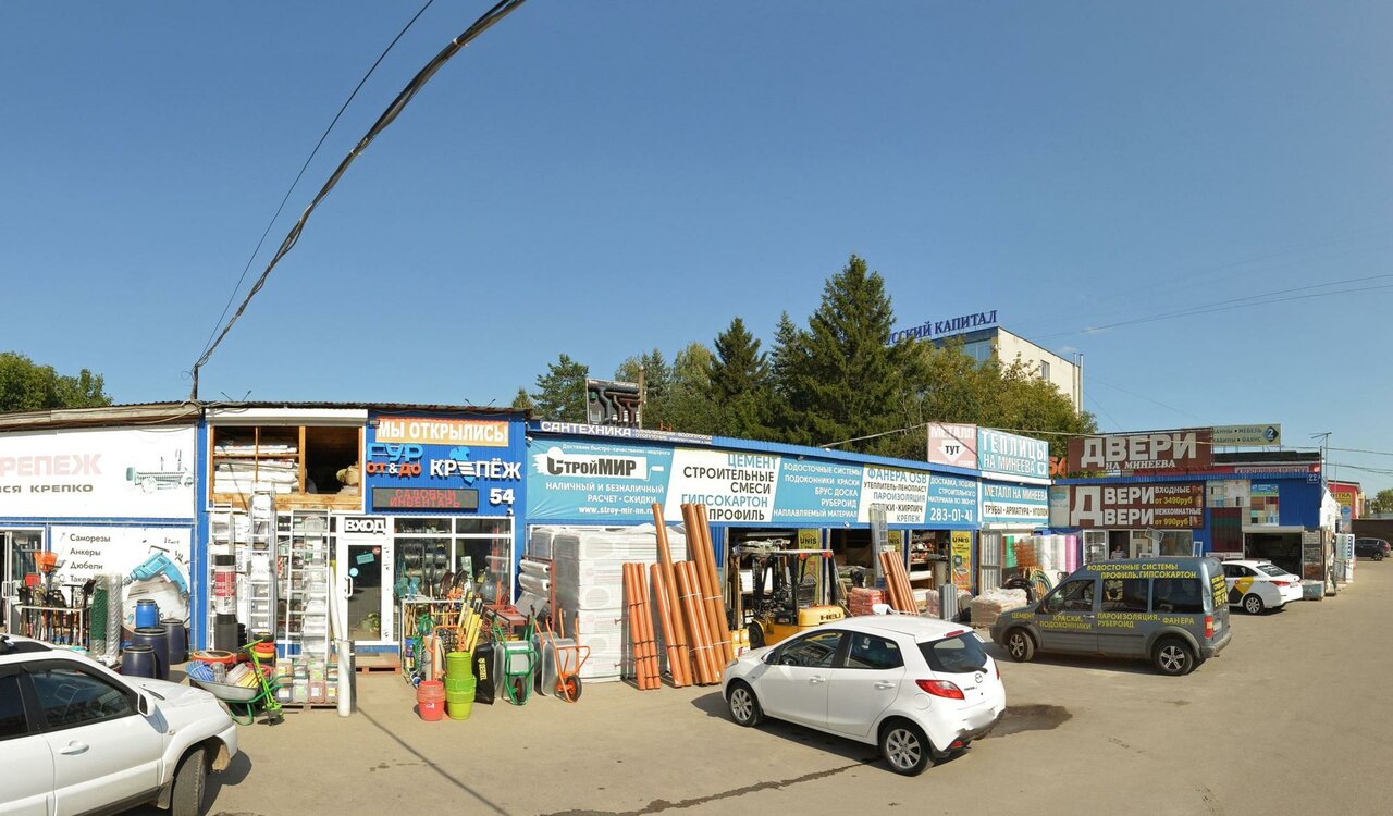 Очень большой выбор строительных материалов. Спокойная, неторопливая атмосфера, Есть ларек с шаурмой, туалет и даже баня.