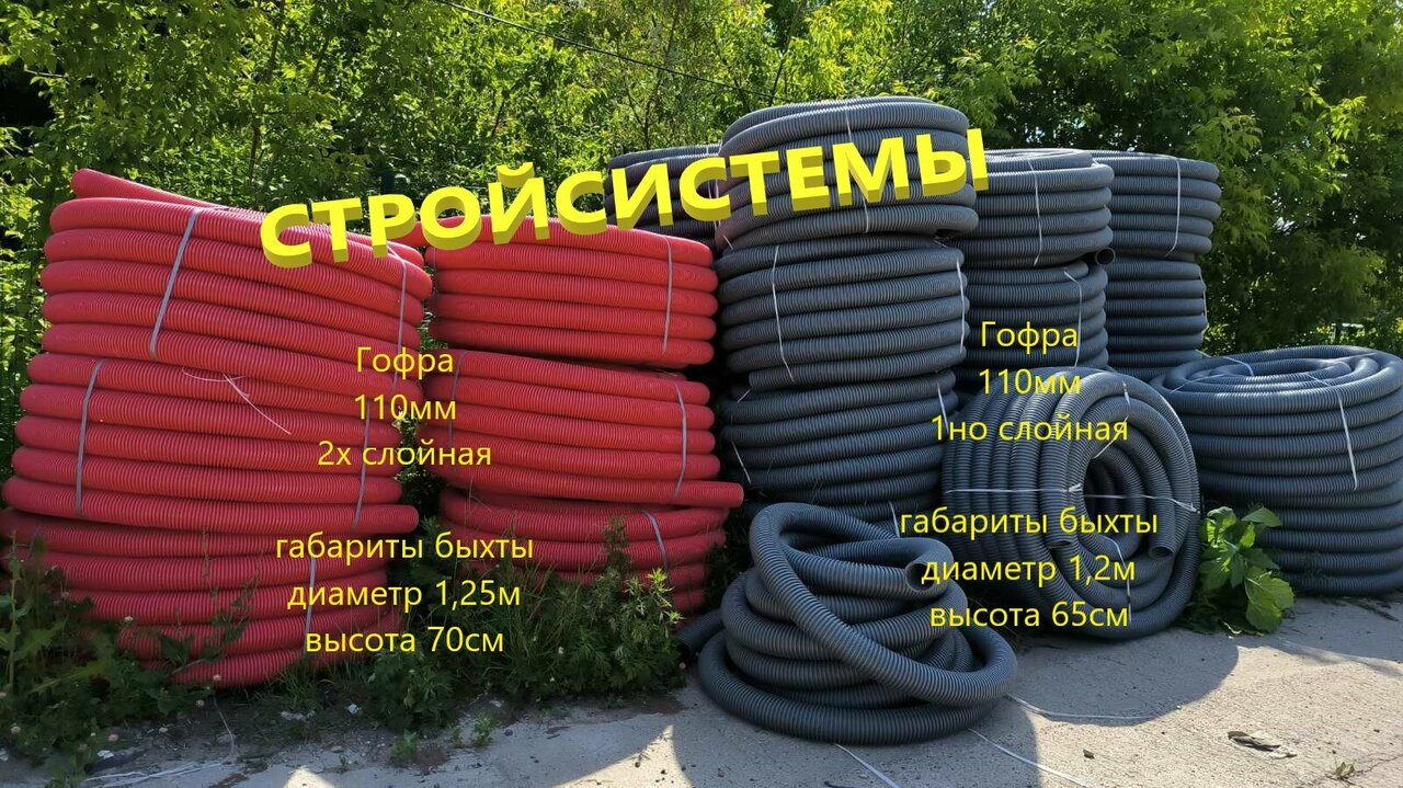 Труба гофрированная. В наличии имеются различные диаметры 50мм, 63мм, 110мм, 160мм.Так же 1-но слойная труба и 2-х слойная труба.