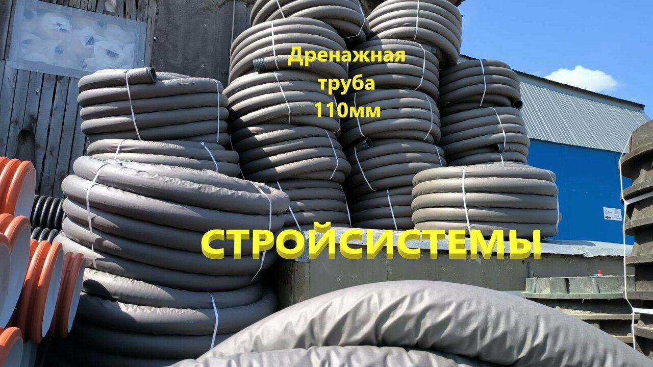 Дренажная труба в геотекстиле. В наличии любой объем и различные диаметры 63, 110, 160 и 200мм