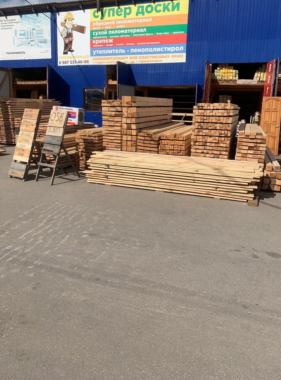 Супер-Доски — строительный магазин в Нижнем Новгороде, специализирующийся на продаже пиломатериалов из лиственницы. Расположен по адресу: ул. Минеева, 29А, корп. 2. В ассортименте представлены доски, брус и другие изделия для строительства и отделки.
