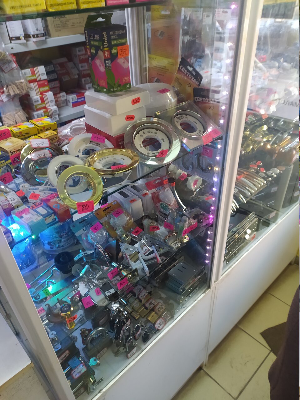 - Большой ассортимент товаров (сантехника, ремонтные материалы, бытовая мелочь)