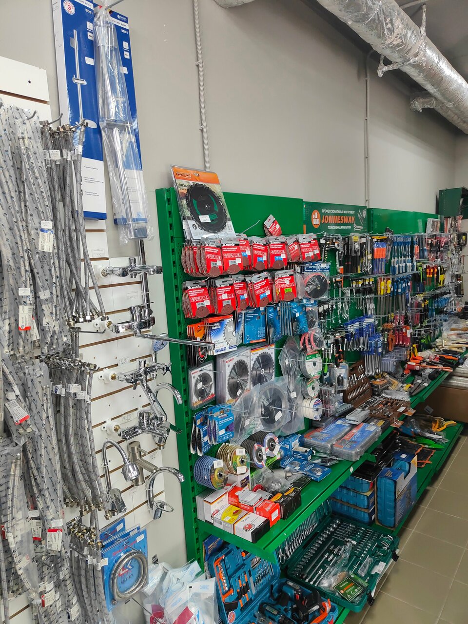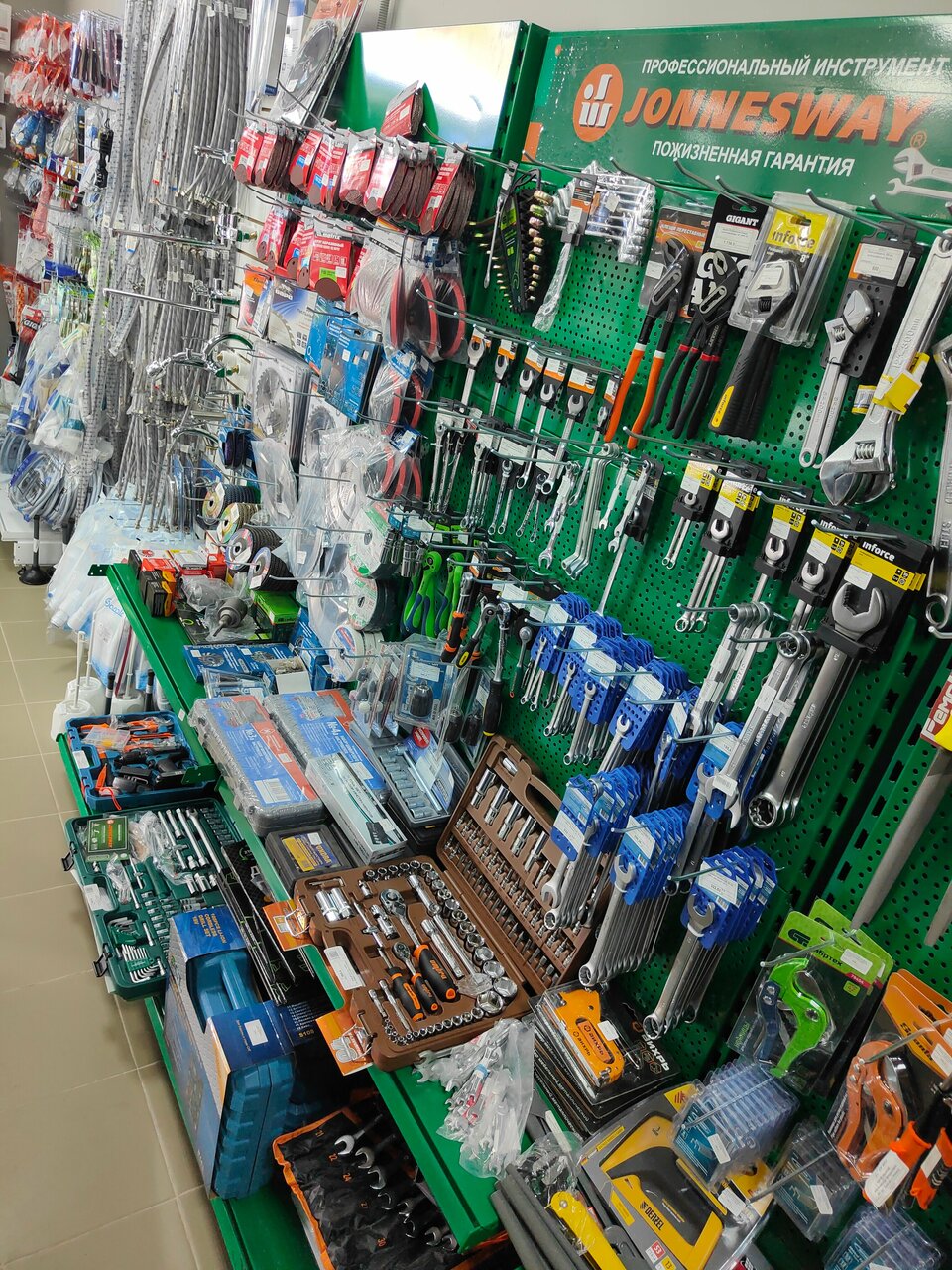 Магазин очень хорош. Тут есть все что нужно для стройки и не только. Цены приемлемы. Все аккуратно выложено. Очень хорошо расположен. Зашел посмотреть набор инструментов и шлифмашинку по цене не укусило и качество товара хорошее пользуюсь уже более 2х месяцев с высокой интенсивностью и хоть бы хны) Рекомендую 🙂